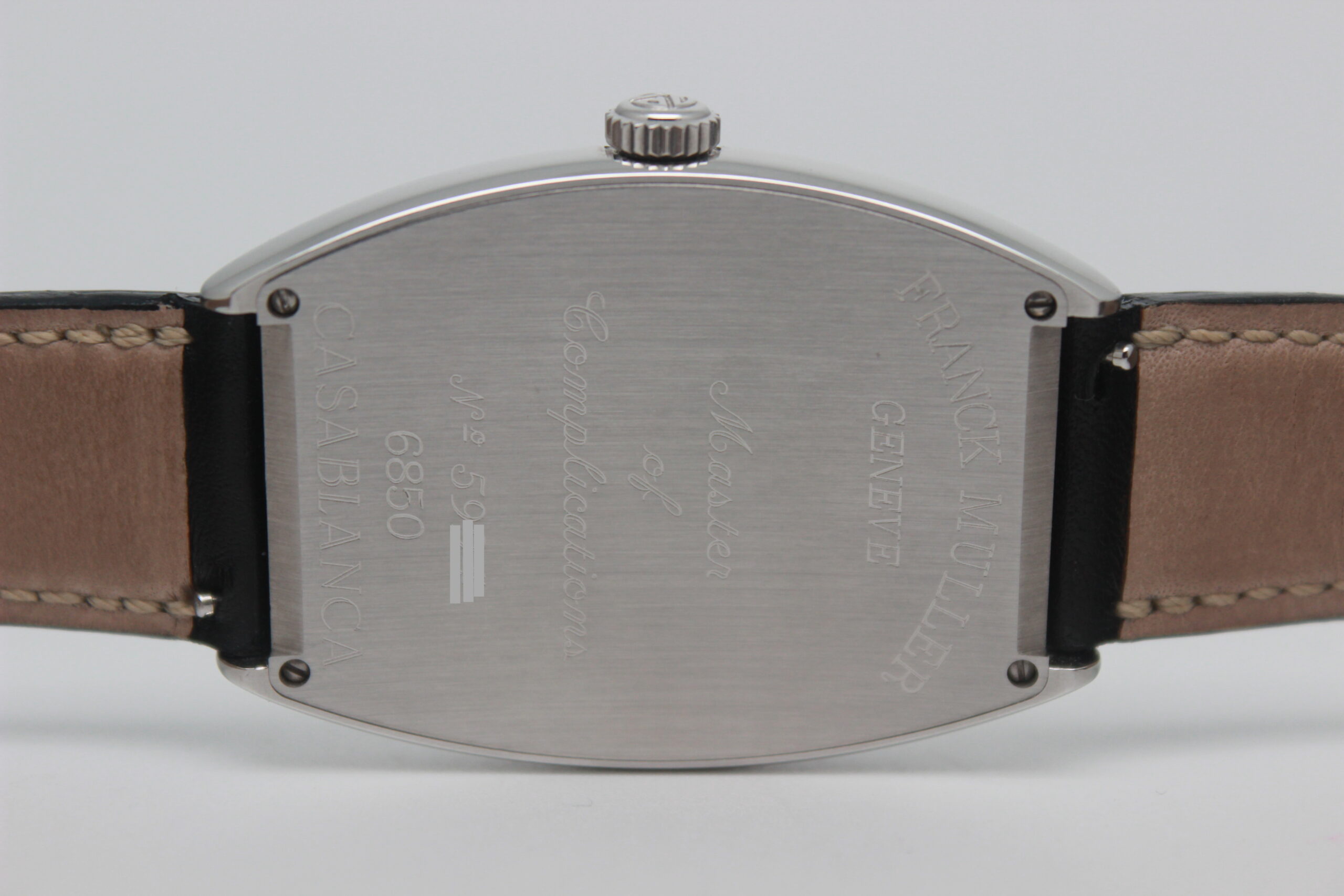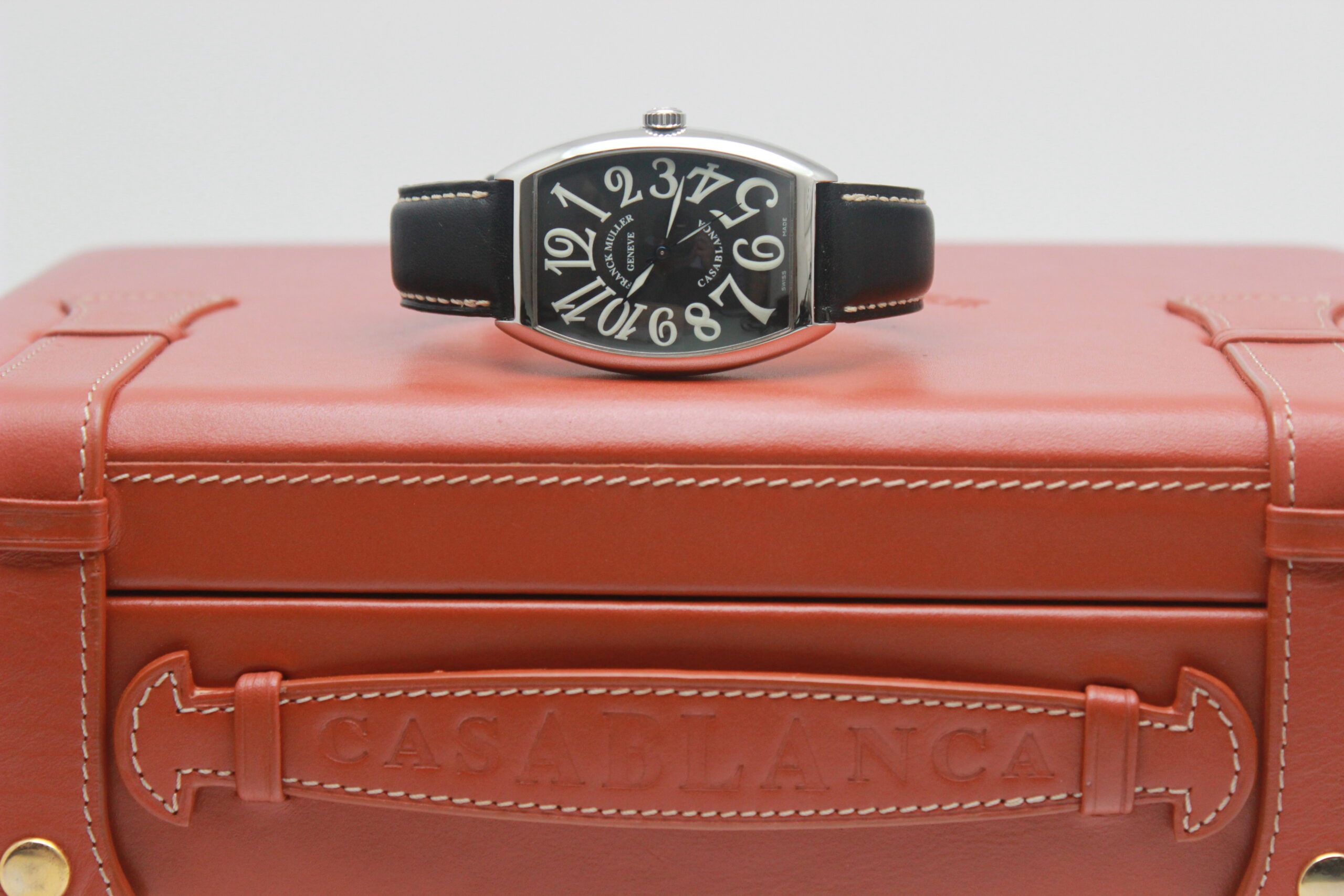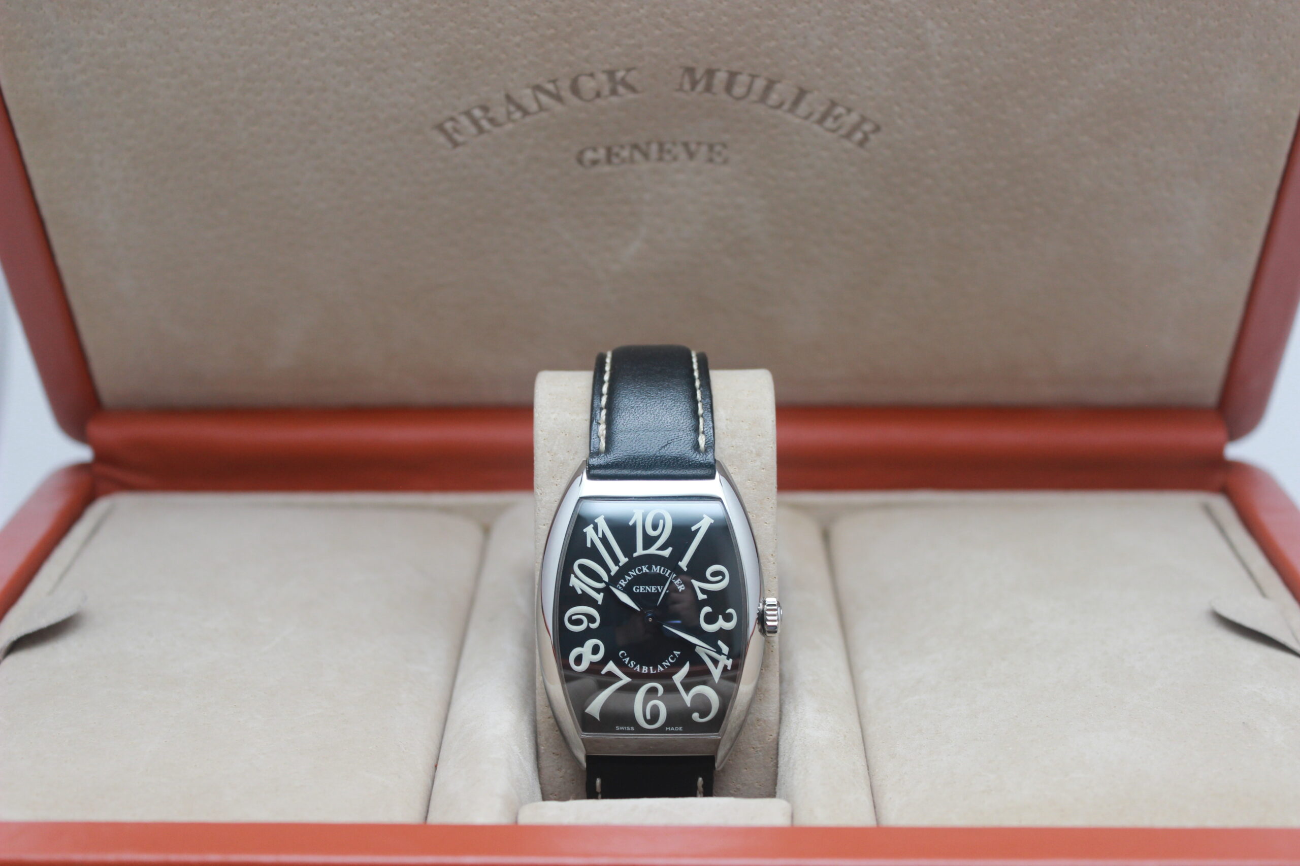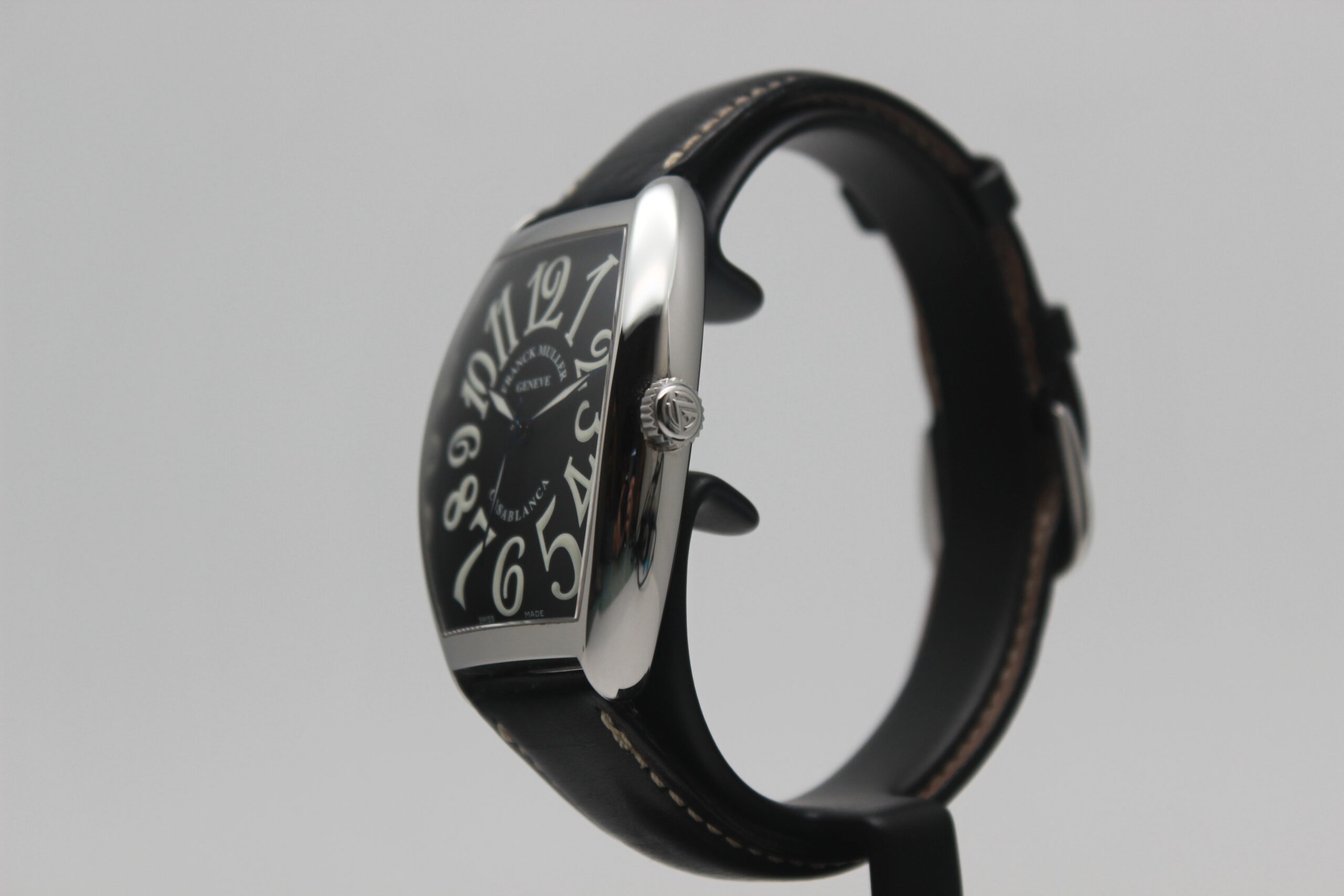 Frank Muller Casablanca 6850 Full Set 2012, 34 mm steel case, black dial with Arabic numerals, black leather strap with steel pin closure. Accompanied by original box and warranty Frank Muller.