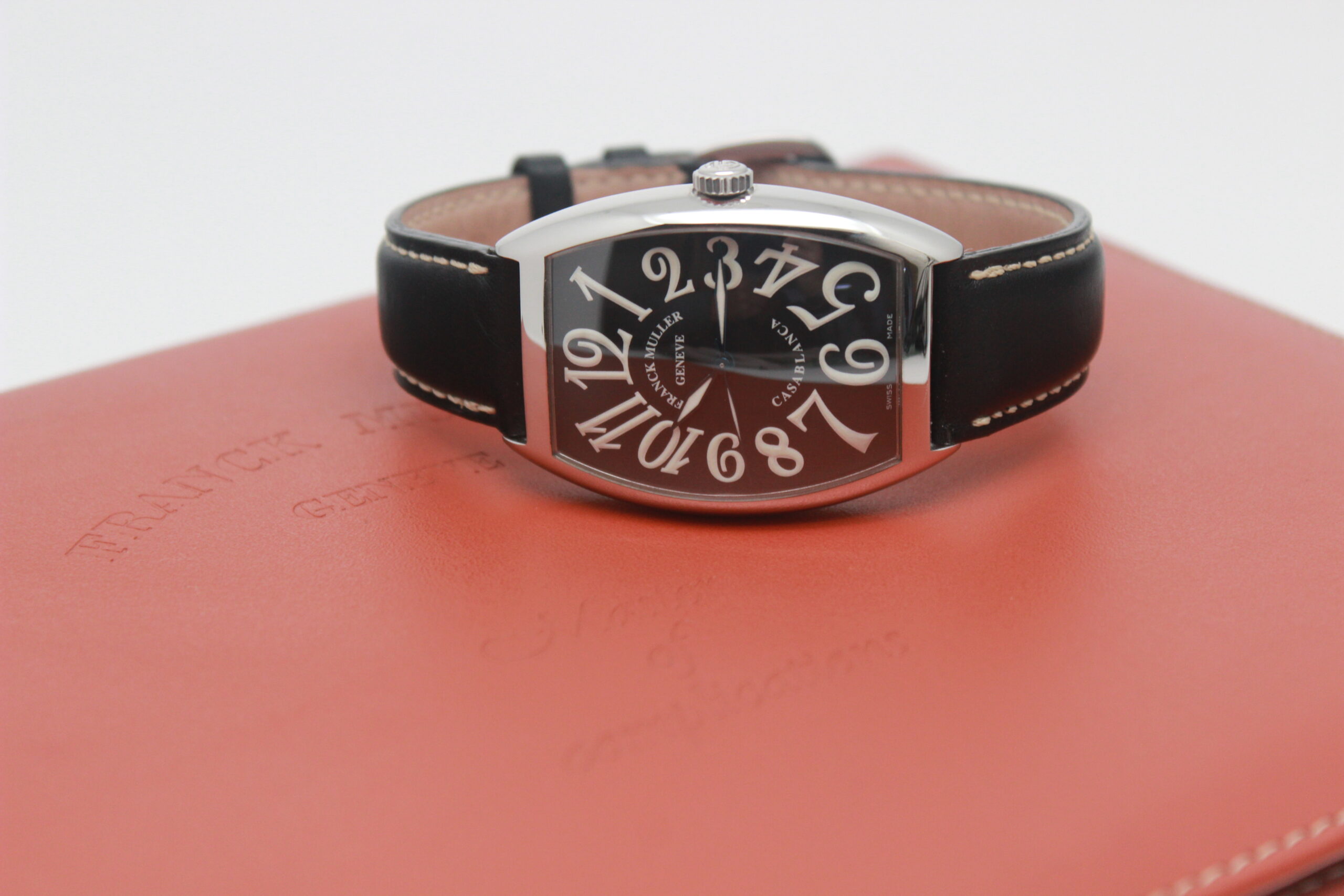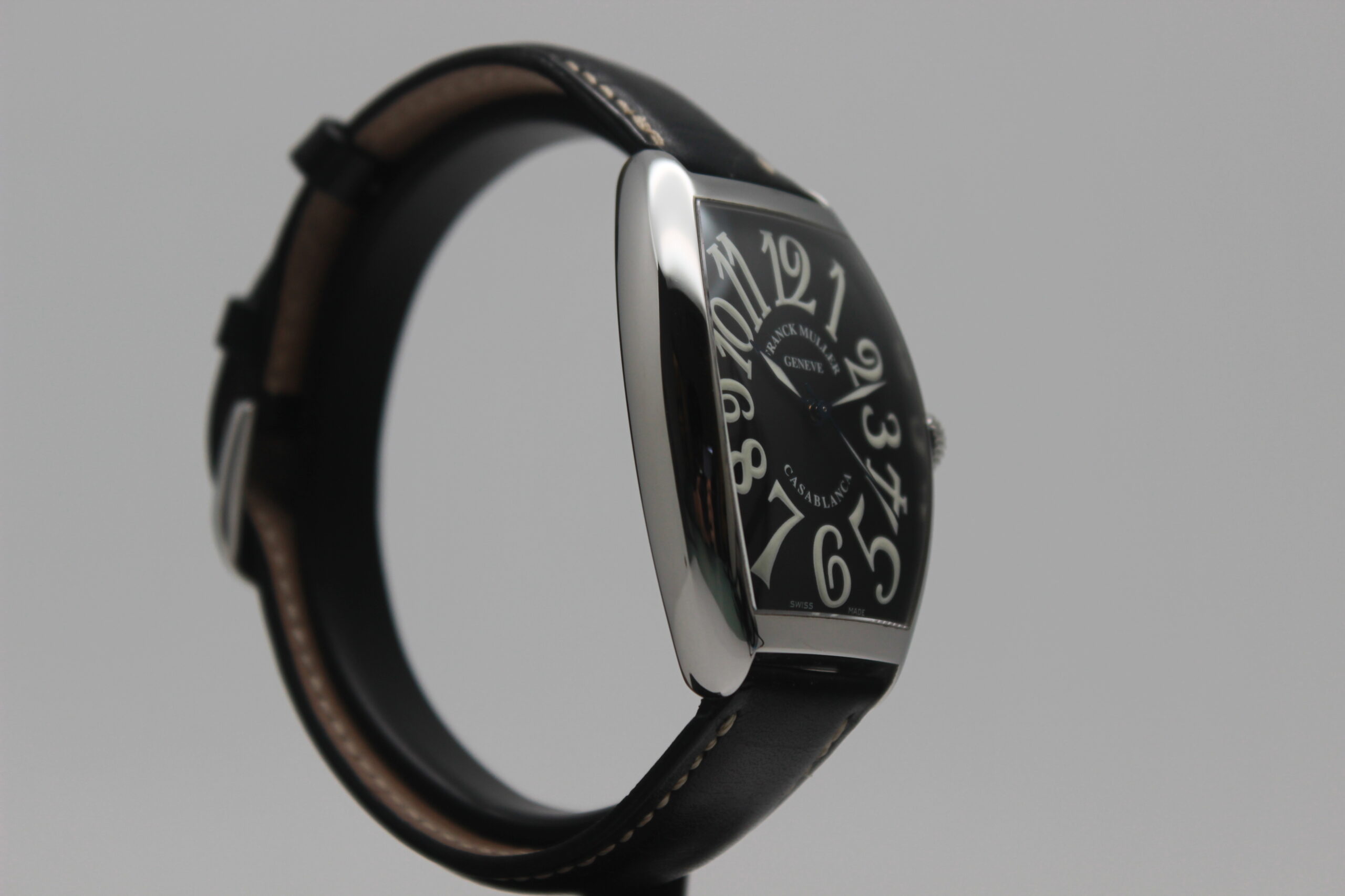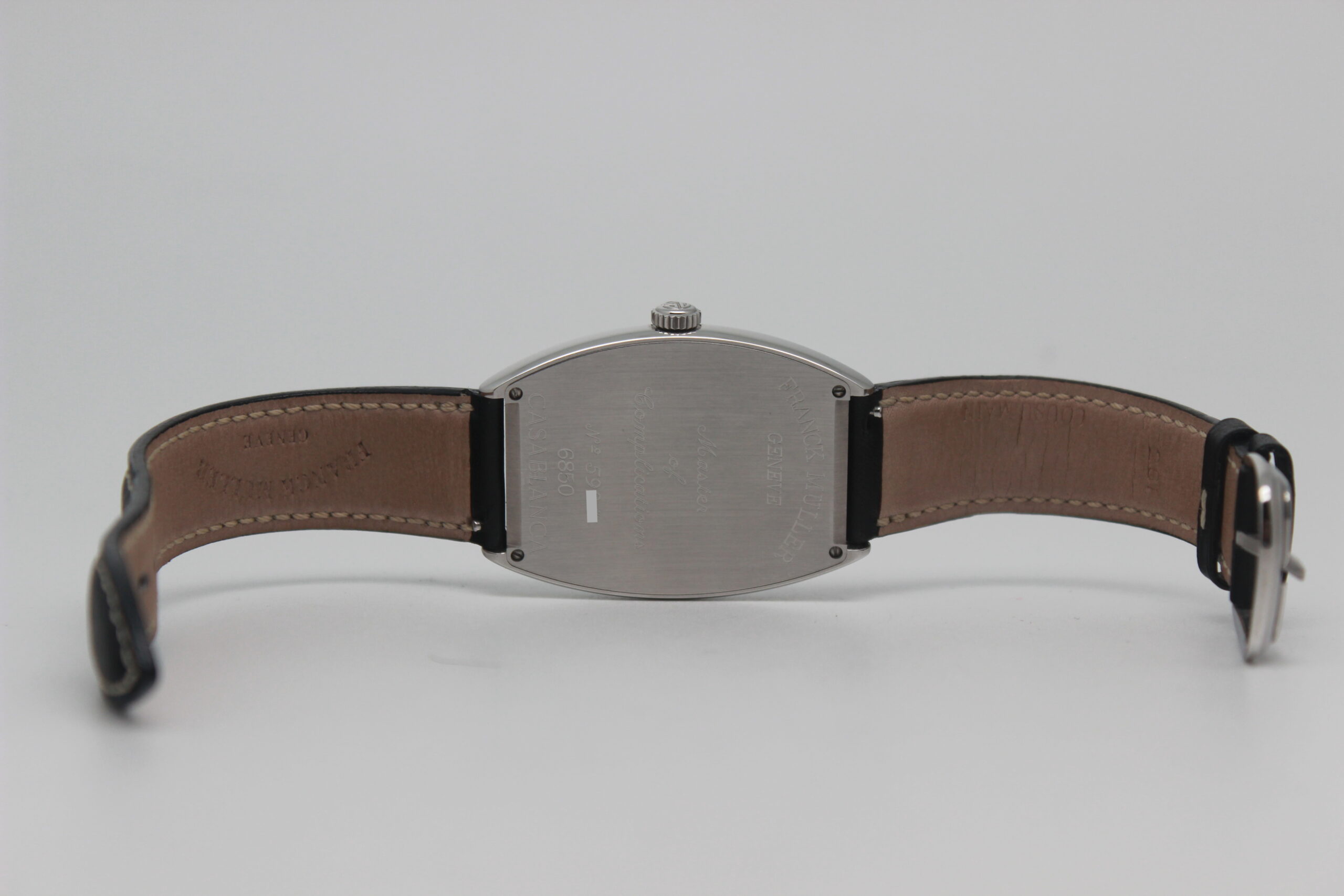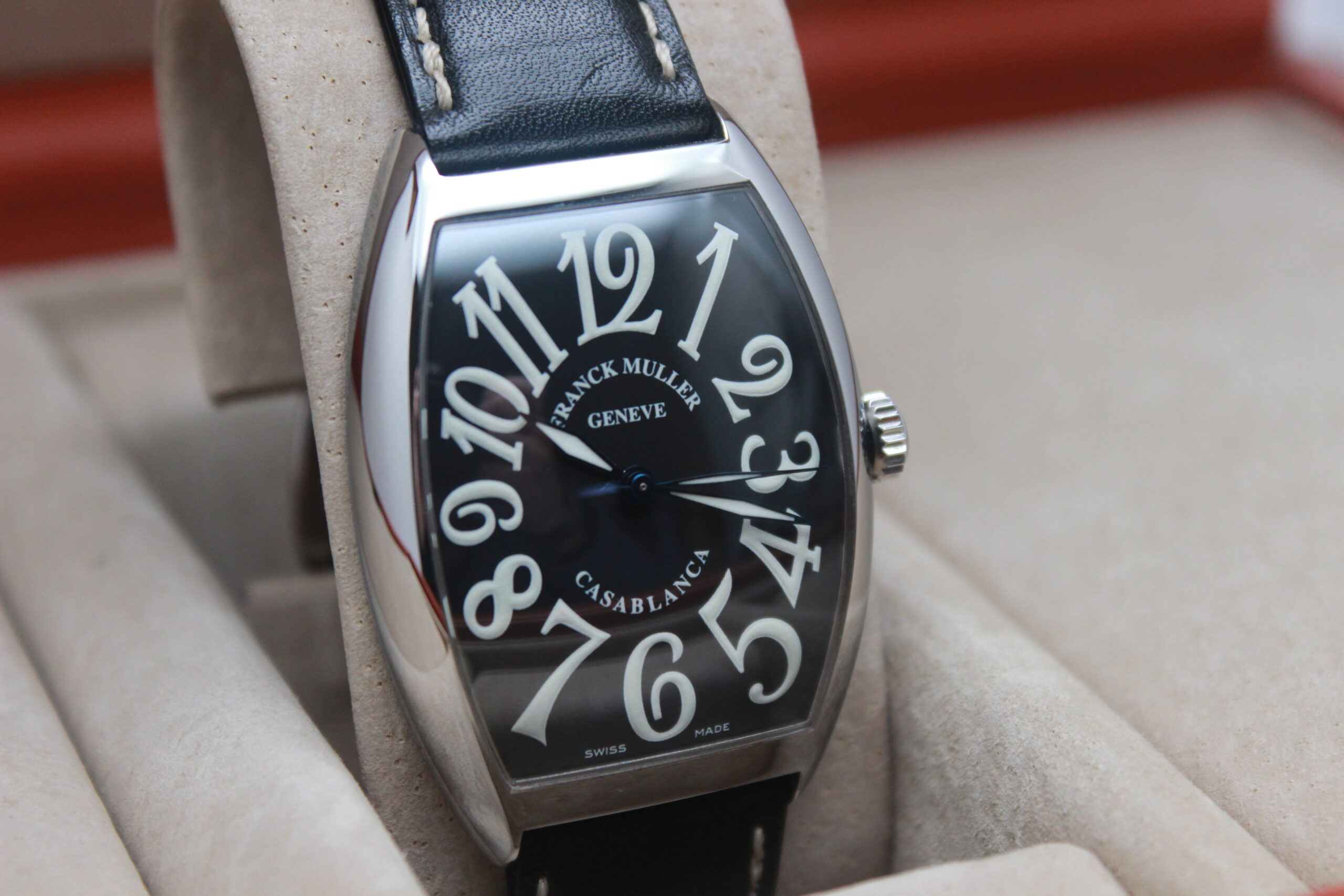 Frank Muller Casablanca 6850 Full Set 2012, 34 mm steel case, black dial with Arabic numerals, black leather strap with steel pin closure. Accompanied by original box and warranty Frank Muller.