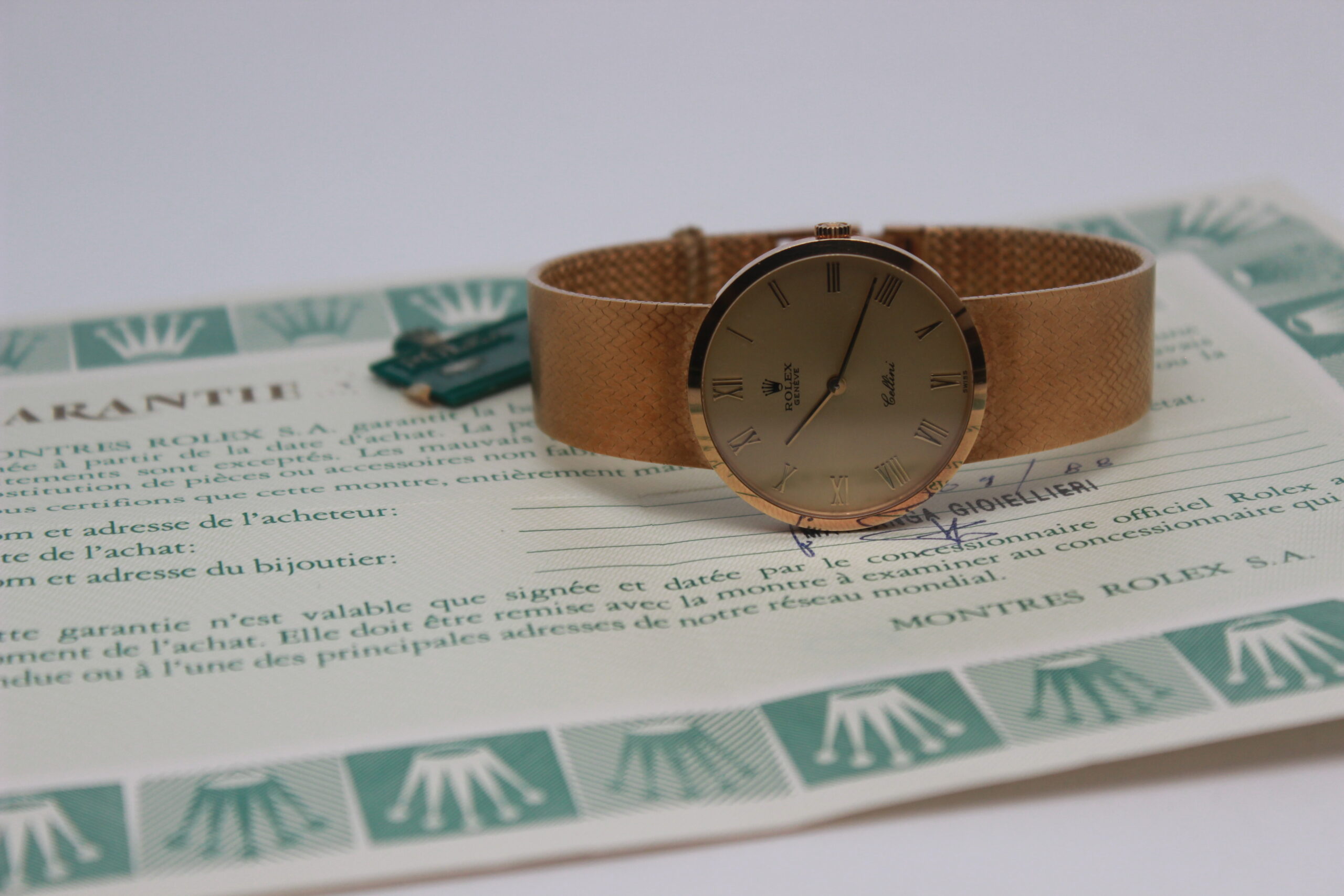 Rolex Cellini 4309 18k “Champagne Dial” Full Set 1988, 32mm yellow gold case, champagne dial with Roman numerals, yellow gold bracelet with déployante clasp. Equipped with original Rolex document holders and warranty.