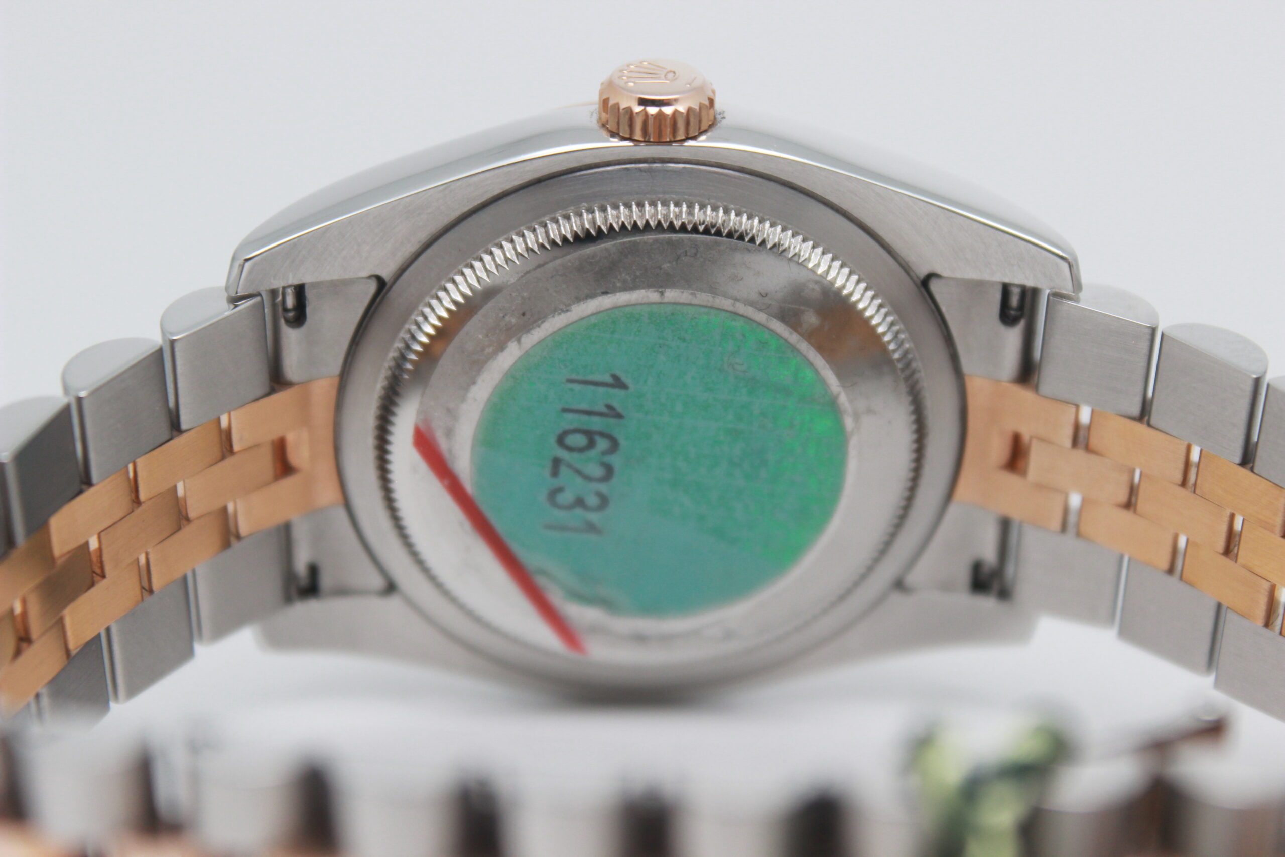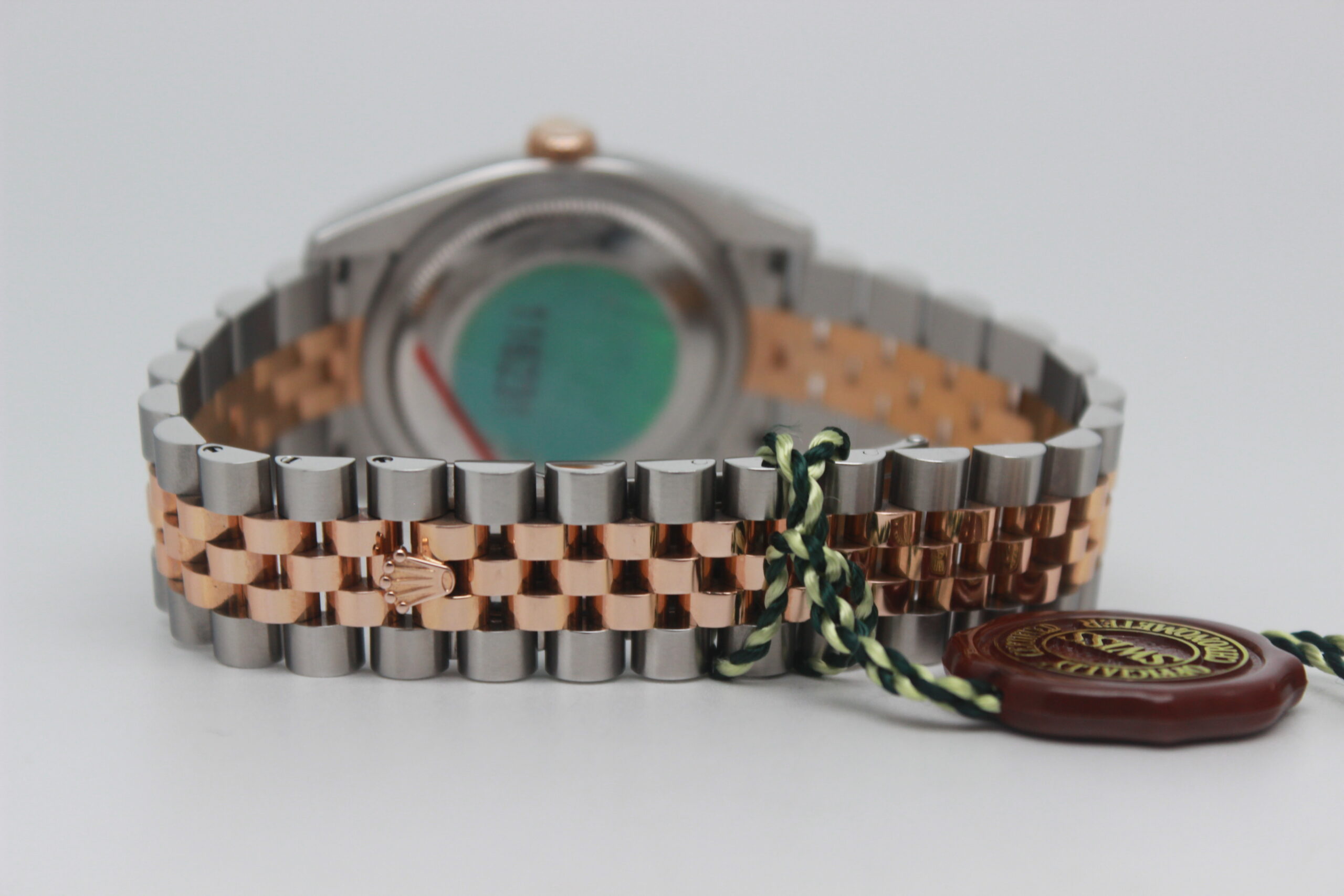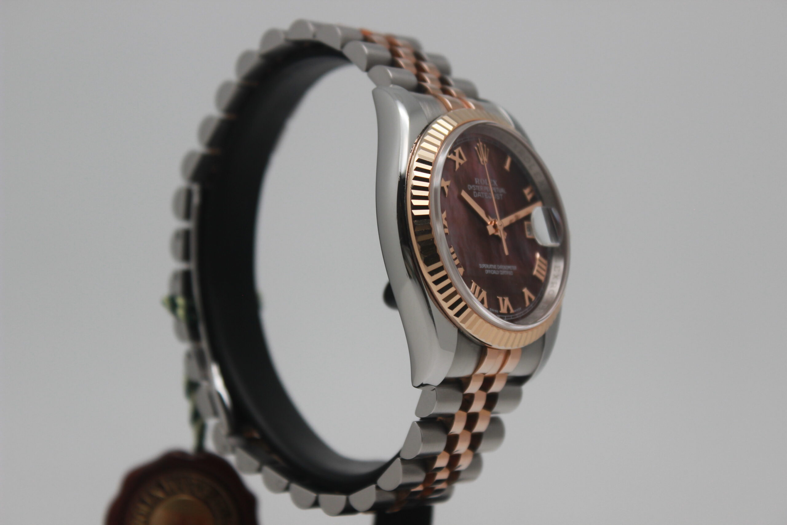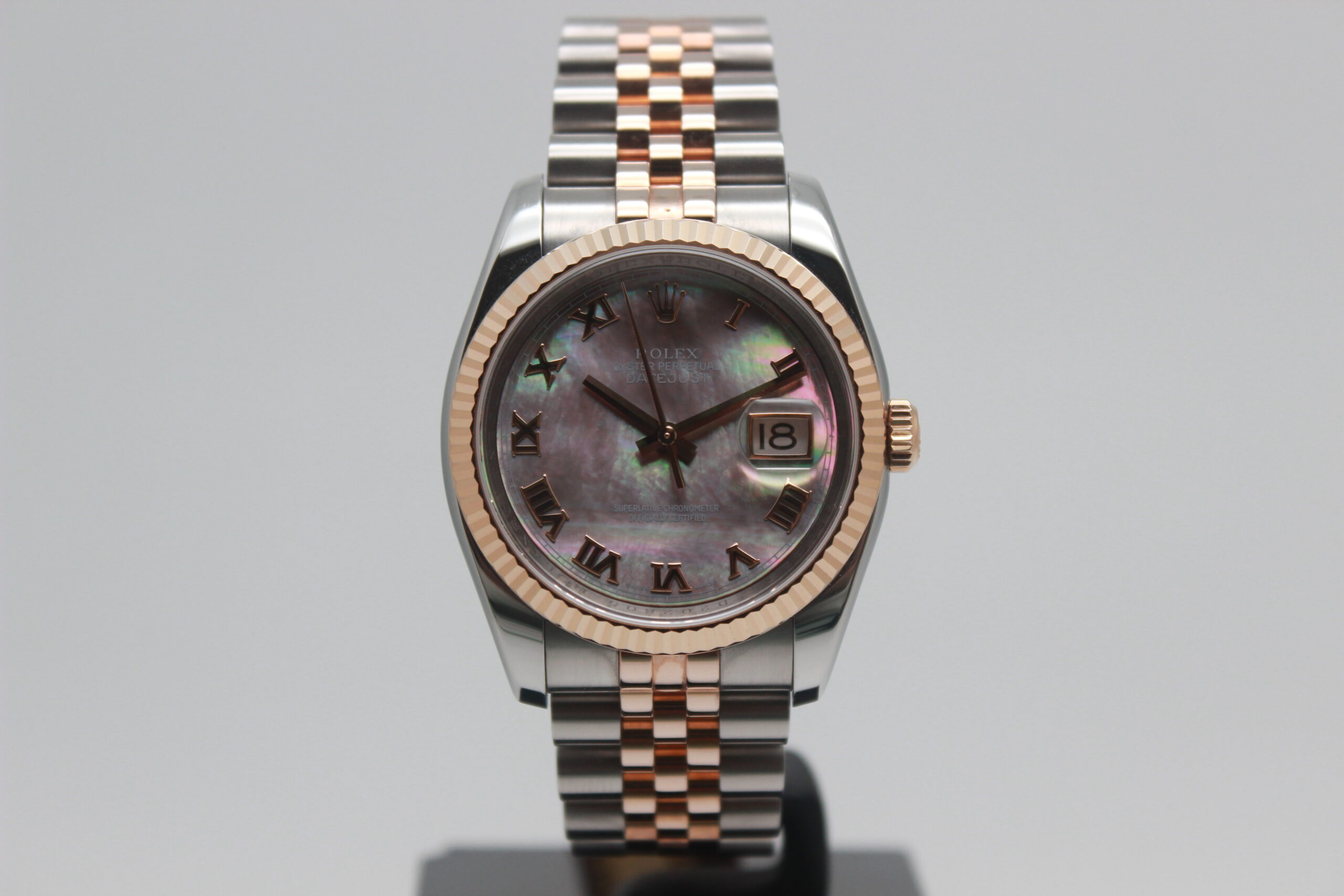 Rolex Datejust 36 116231 Full Set 2006, 36mm steel and gold case, mother-of-pearl dial with Roman numerals and date, rose gold knurled bezel, Jubilee bracelet in satin steel and polished rose gold with pop-up clasp. Equipped with original Rolex box and warranty.