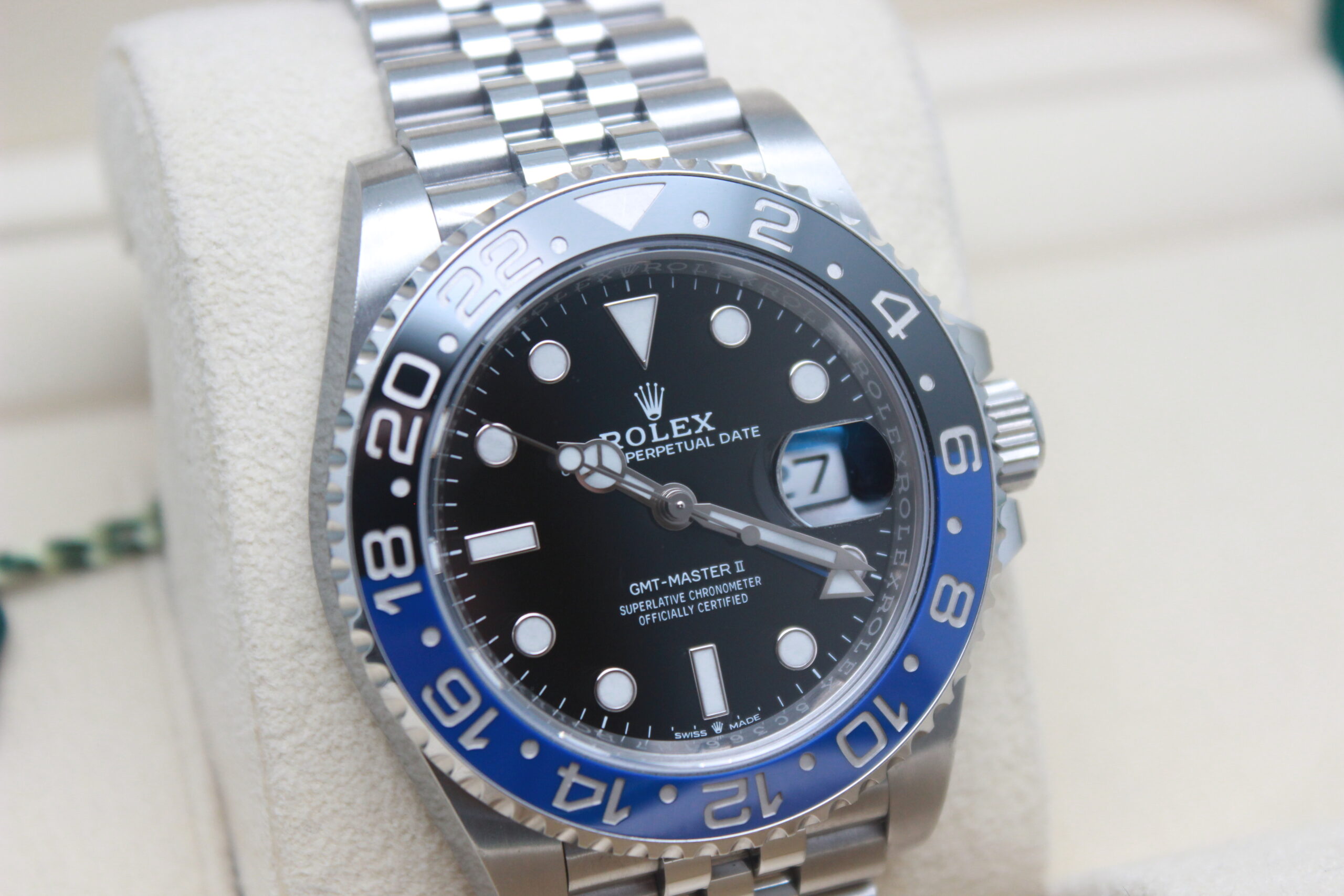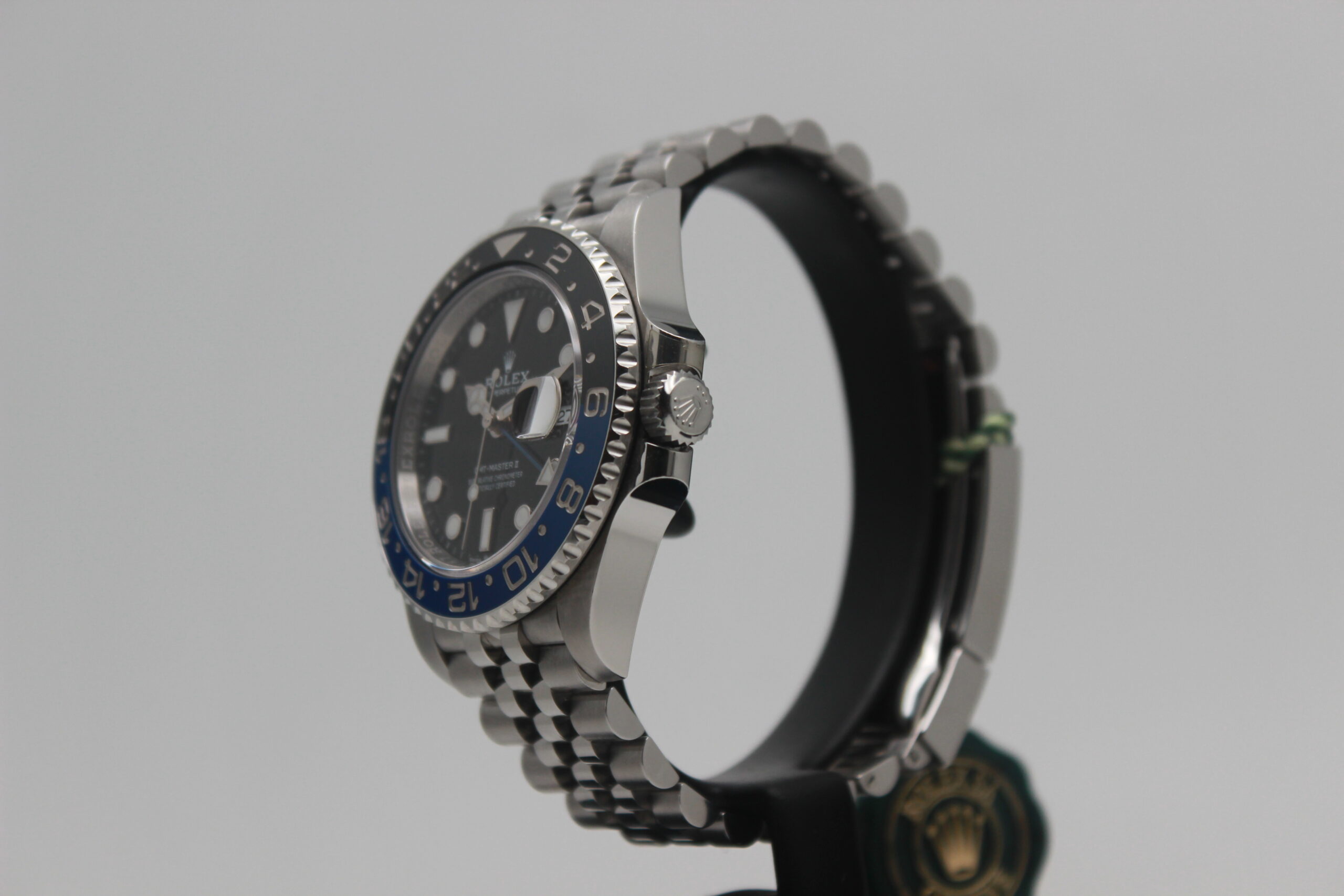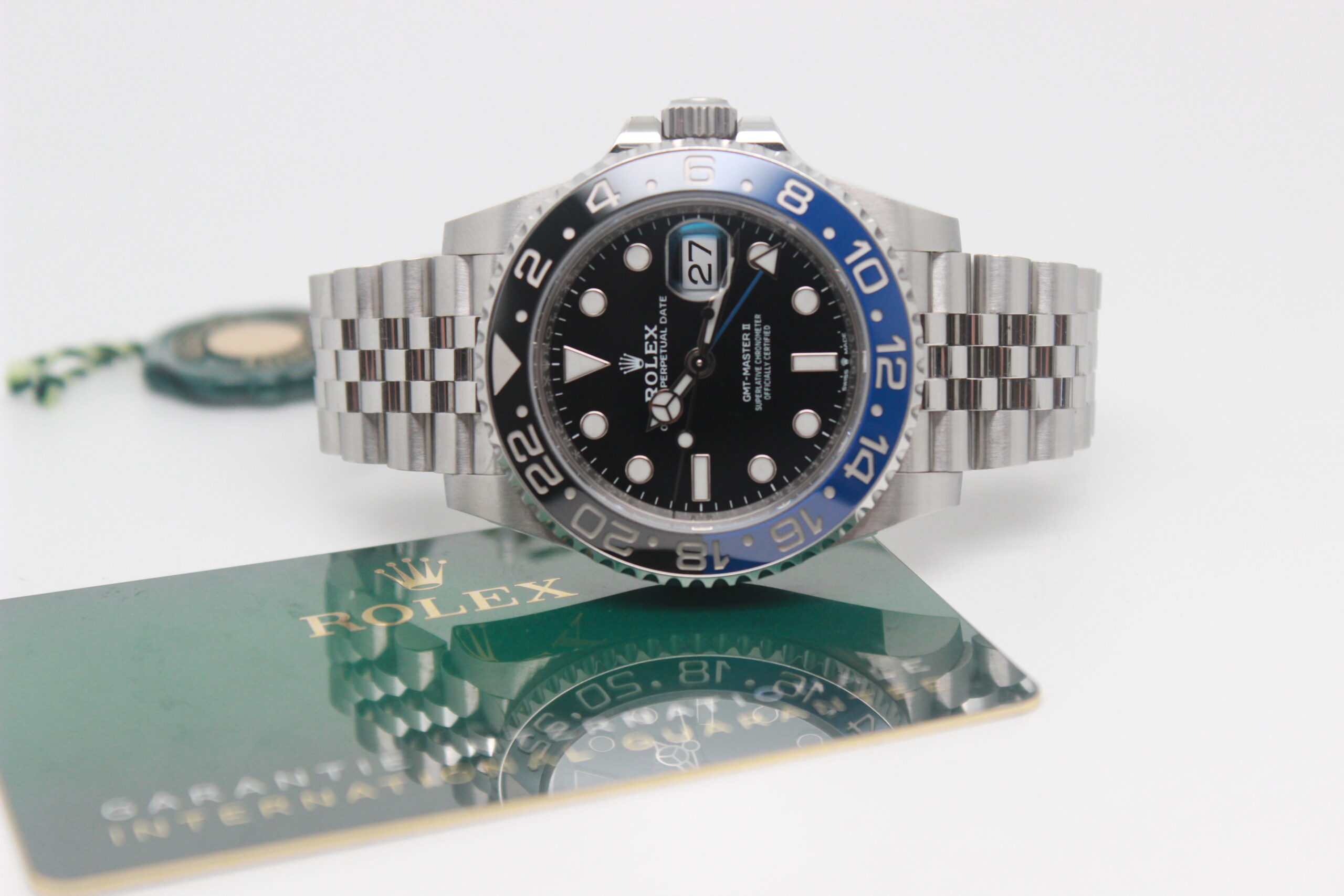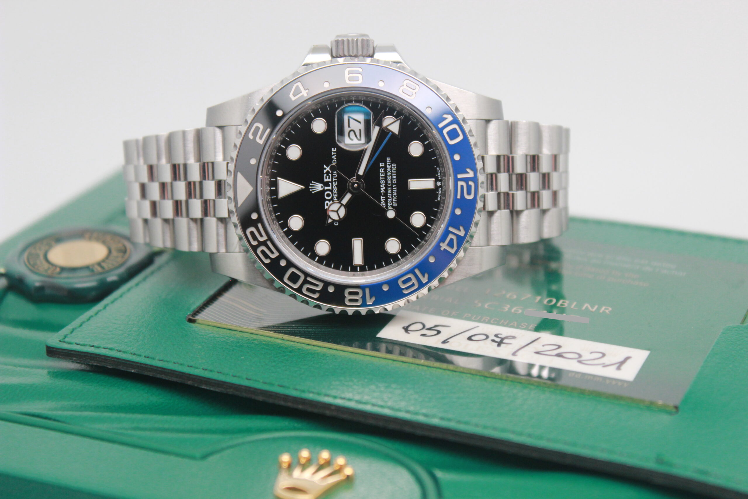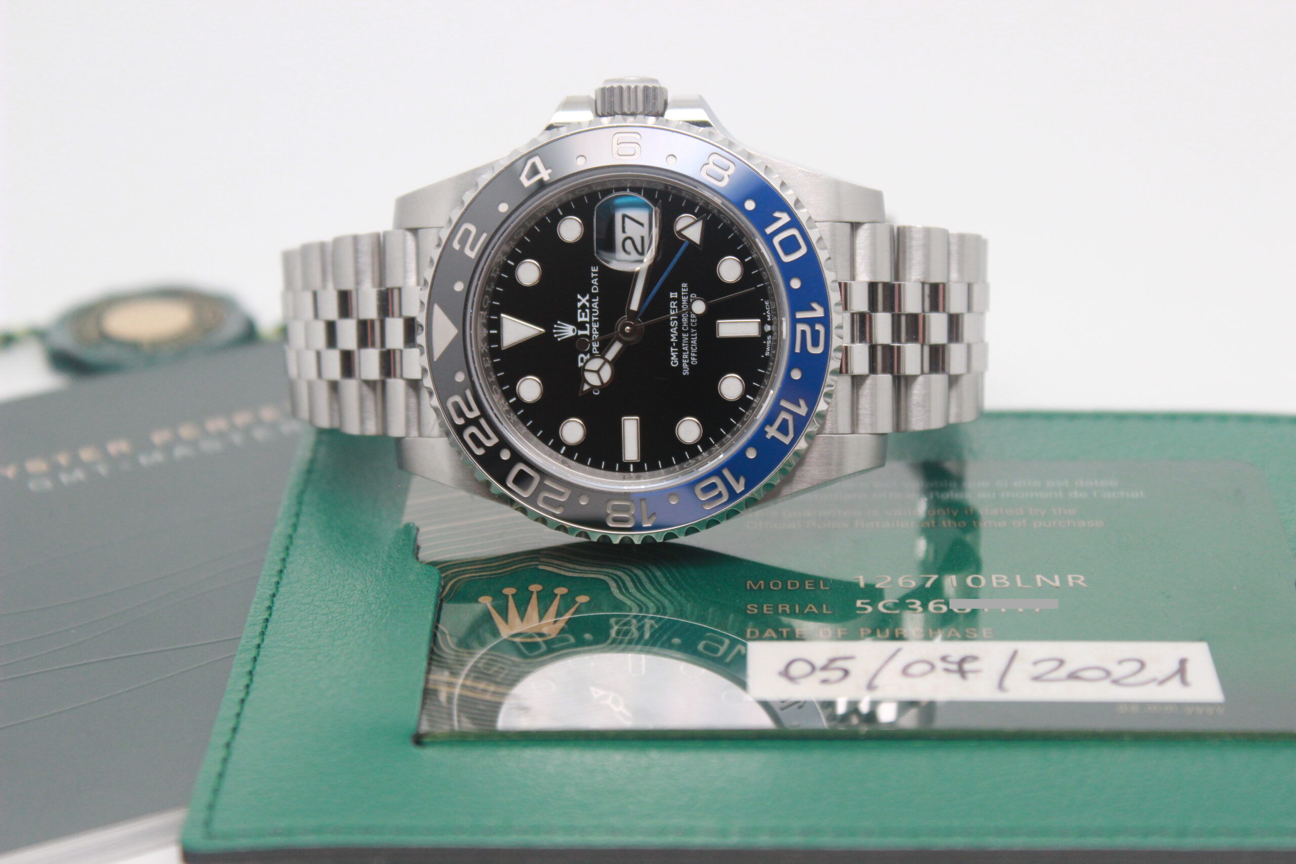Rolex GMT-Master II 126710BLNR Full Set 2021, 40mm steel case, steel bezel with blue and black ceramic insert, Jubilee bracelet in polished and satin steel with polished and satin steel Oysterlock clasp. This model features a 3186 caliber self-winding mechanical movement with date. Comes with an original Rolex box and warranty card.