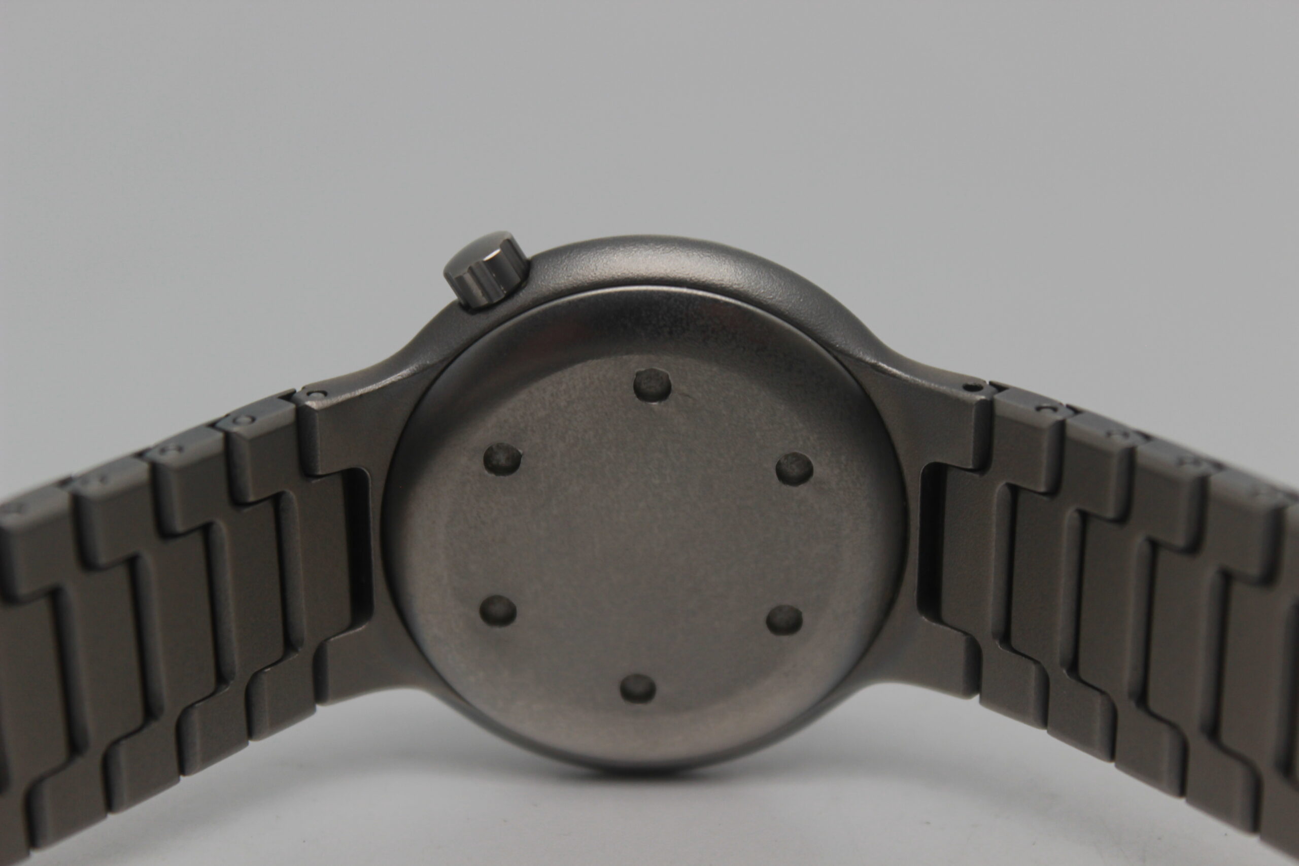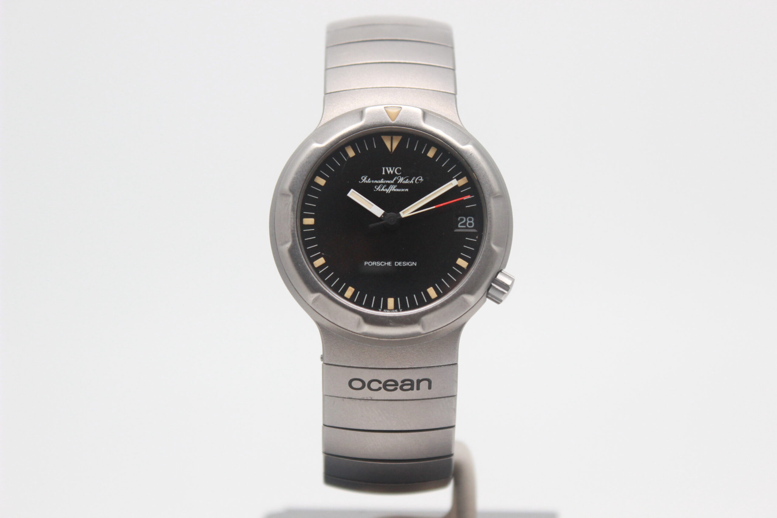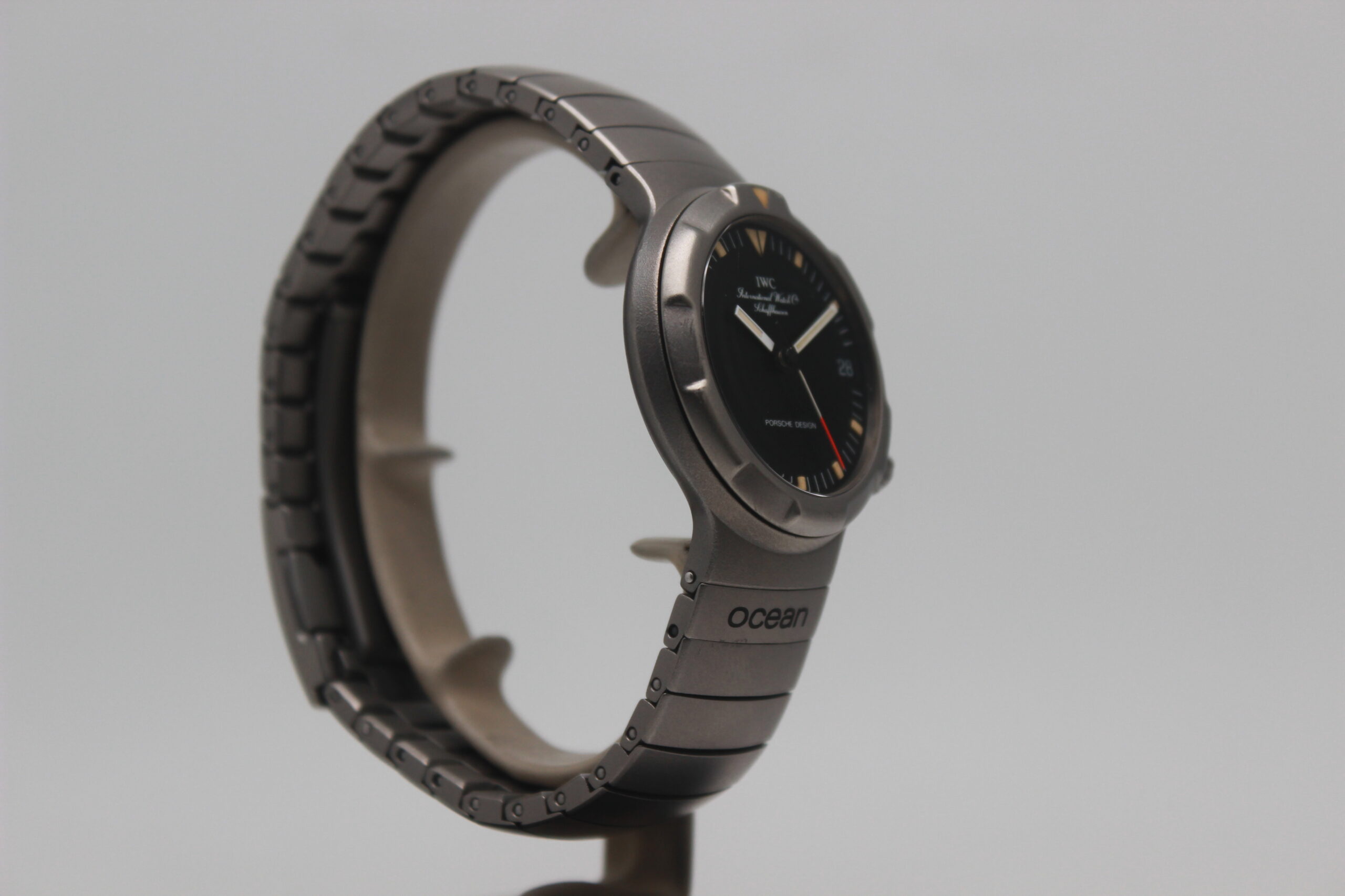 IWC Porsche Design Ocean 500 “Tritium Dial” , cassa in titanio da 34 mm, quadrante nero con data e indici al trizio, cinturino in titanio con chiusura déployante in titanio.