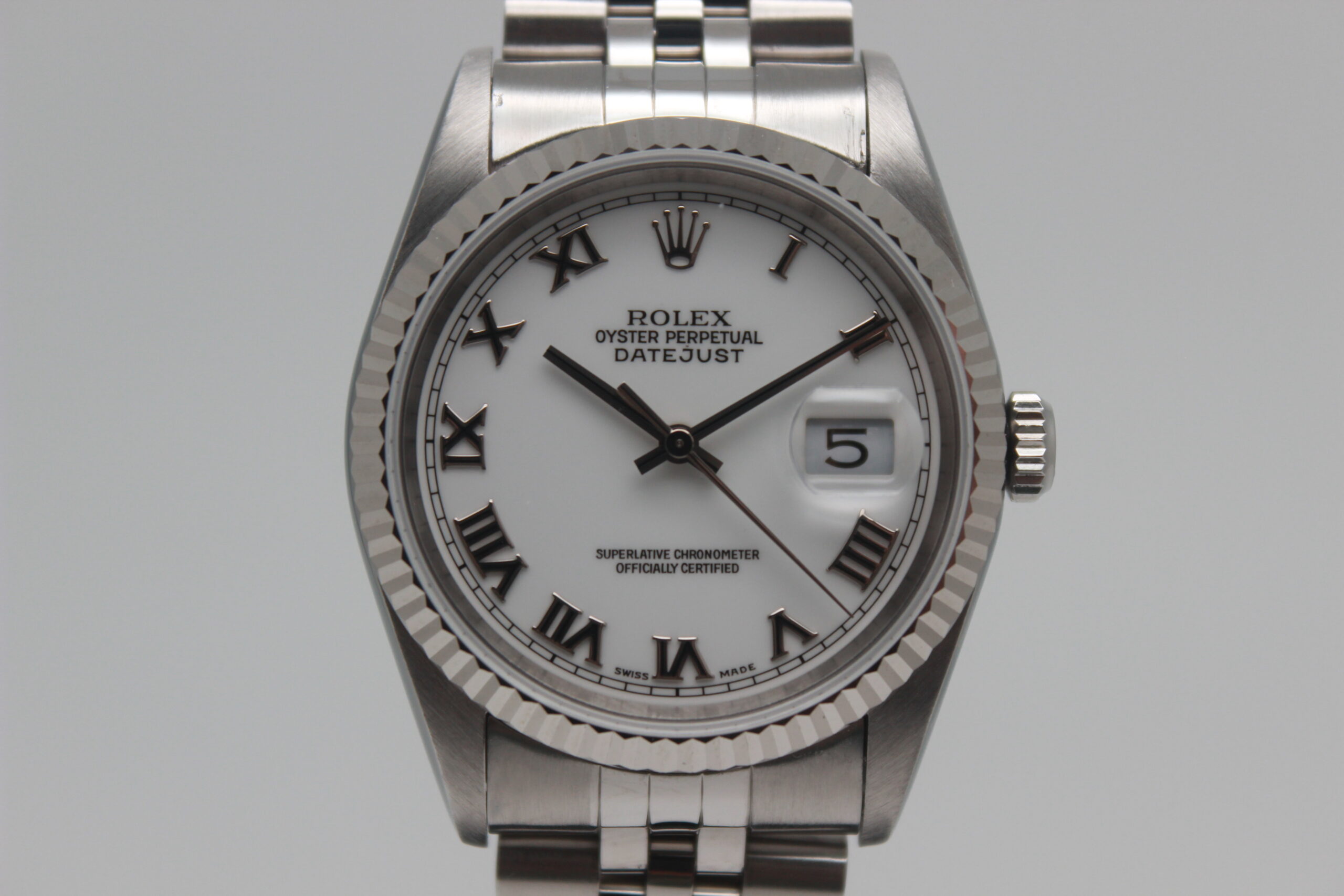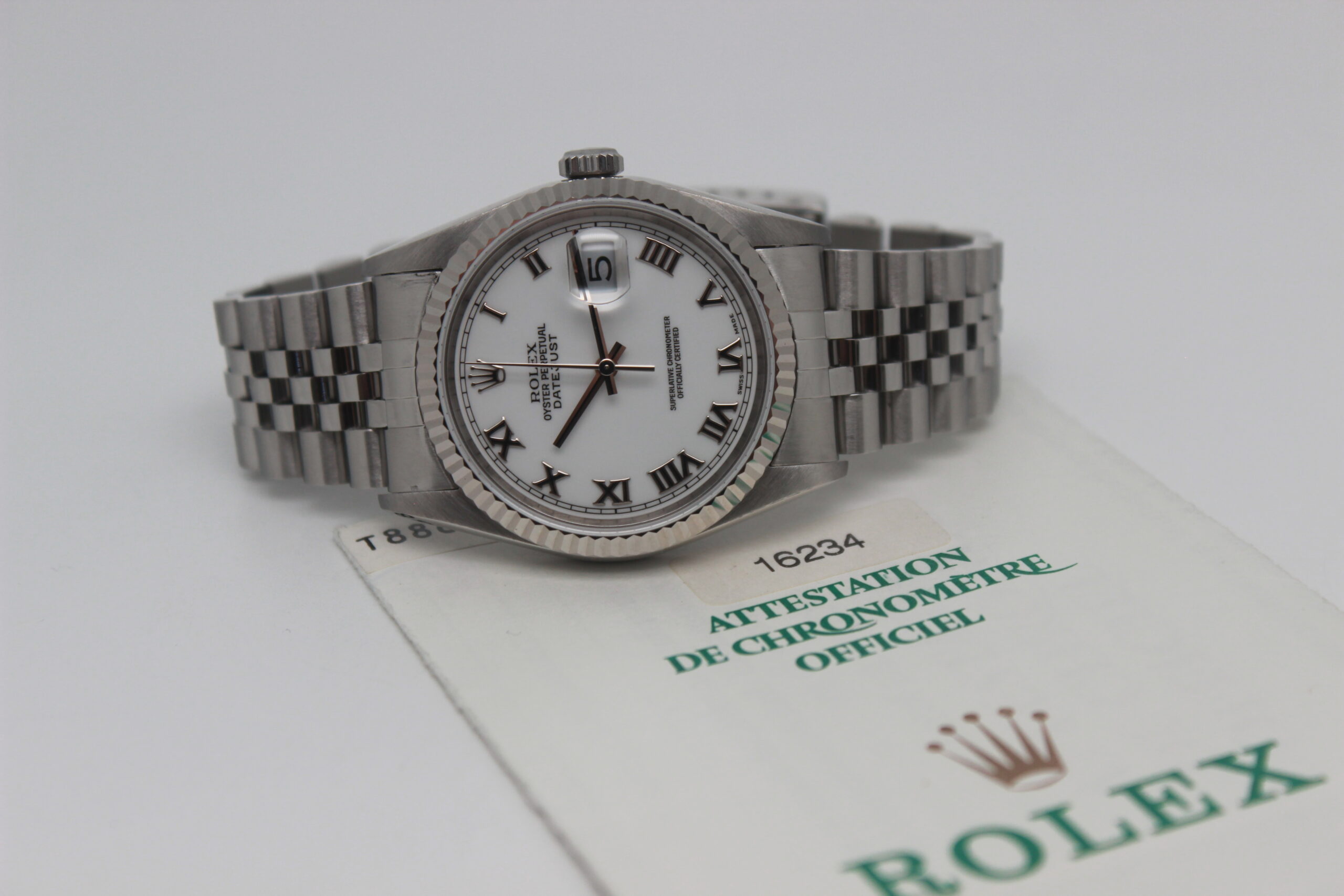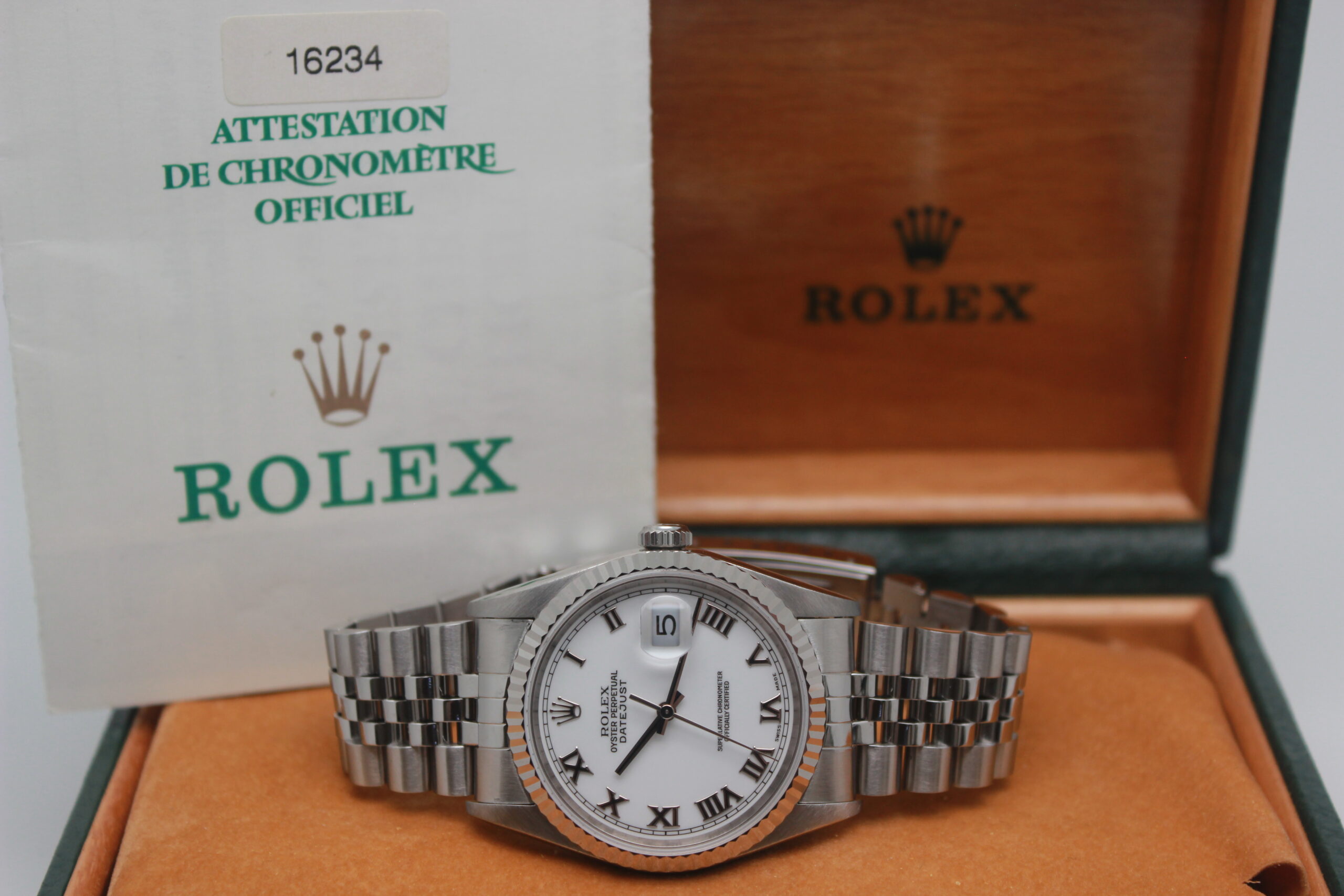 Rolex Datejust 36 “White Roman Dial” 16234 Full Set 1999