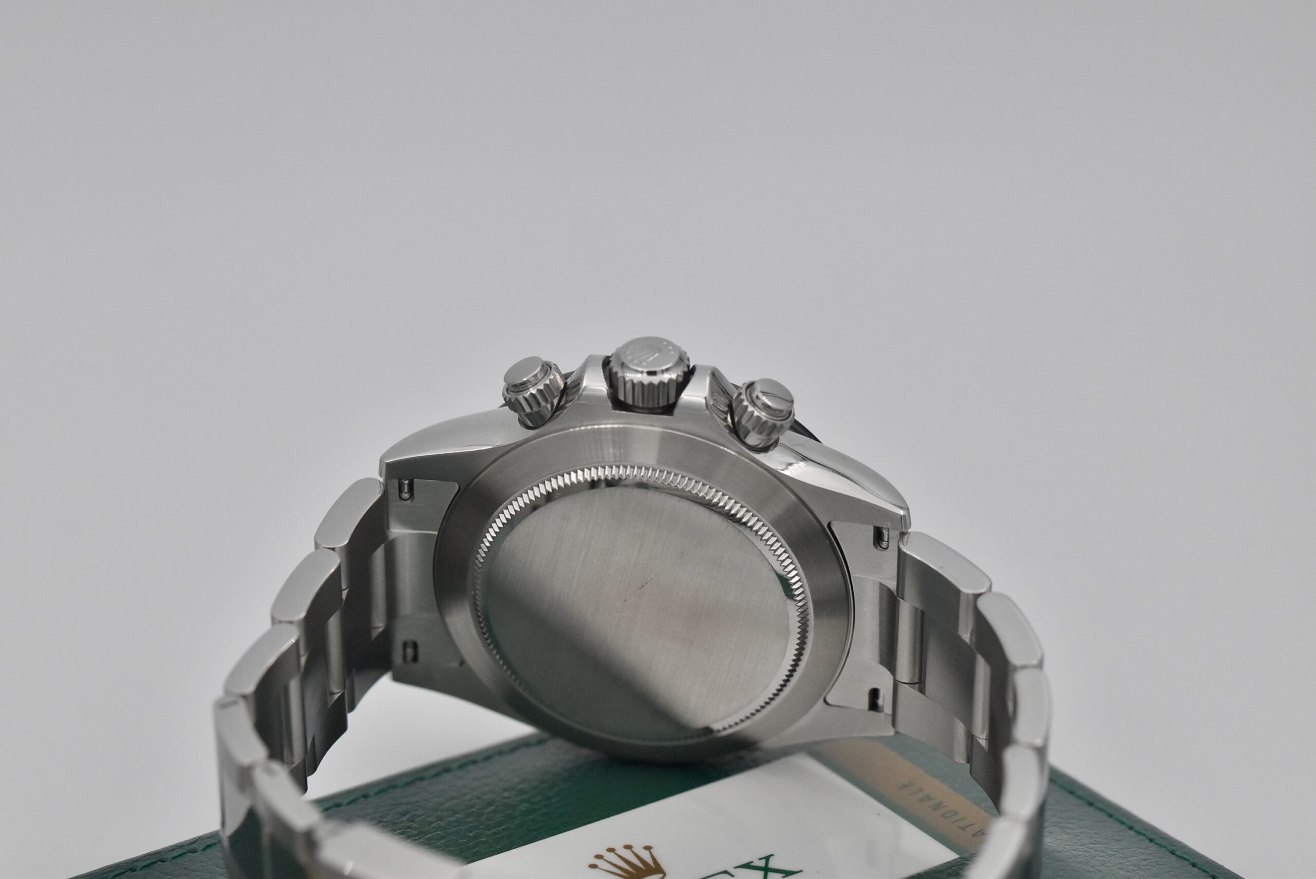 Rolex Daytona Cosmograph, referenza 116500LN, seriale alfanumerico, anno 2019, corredato di scatola originale e card di garanzia Rolex.