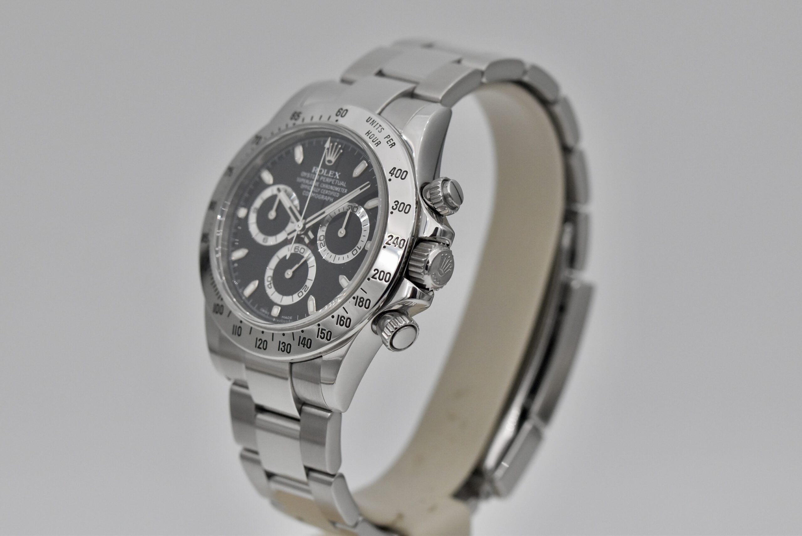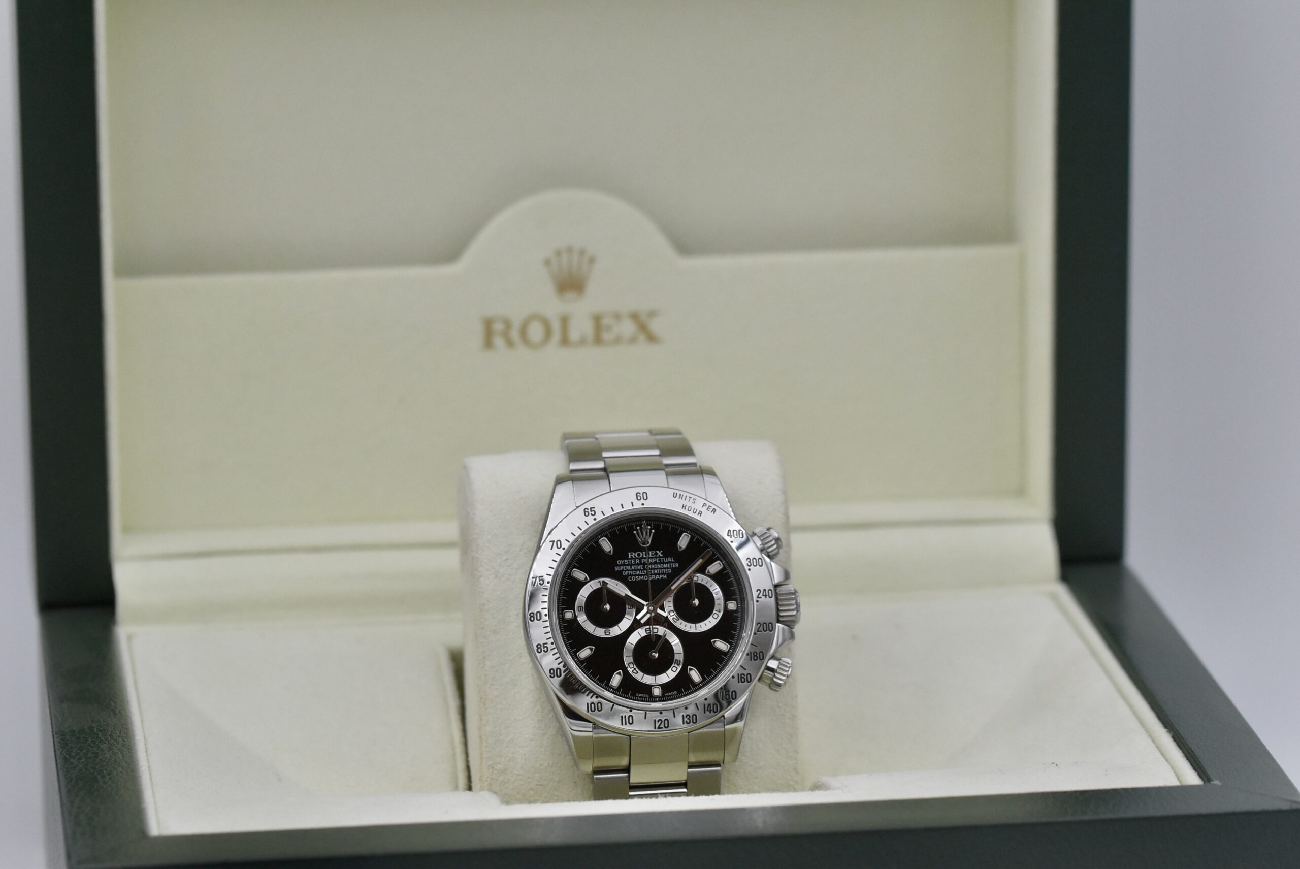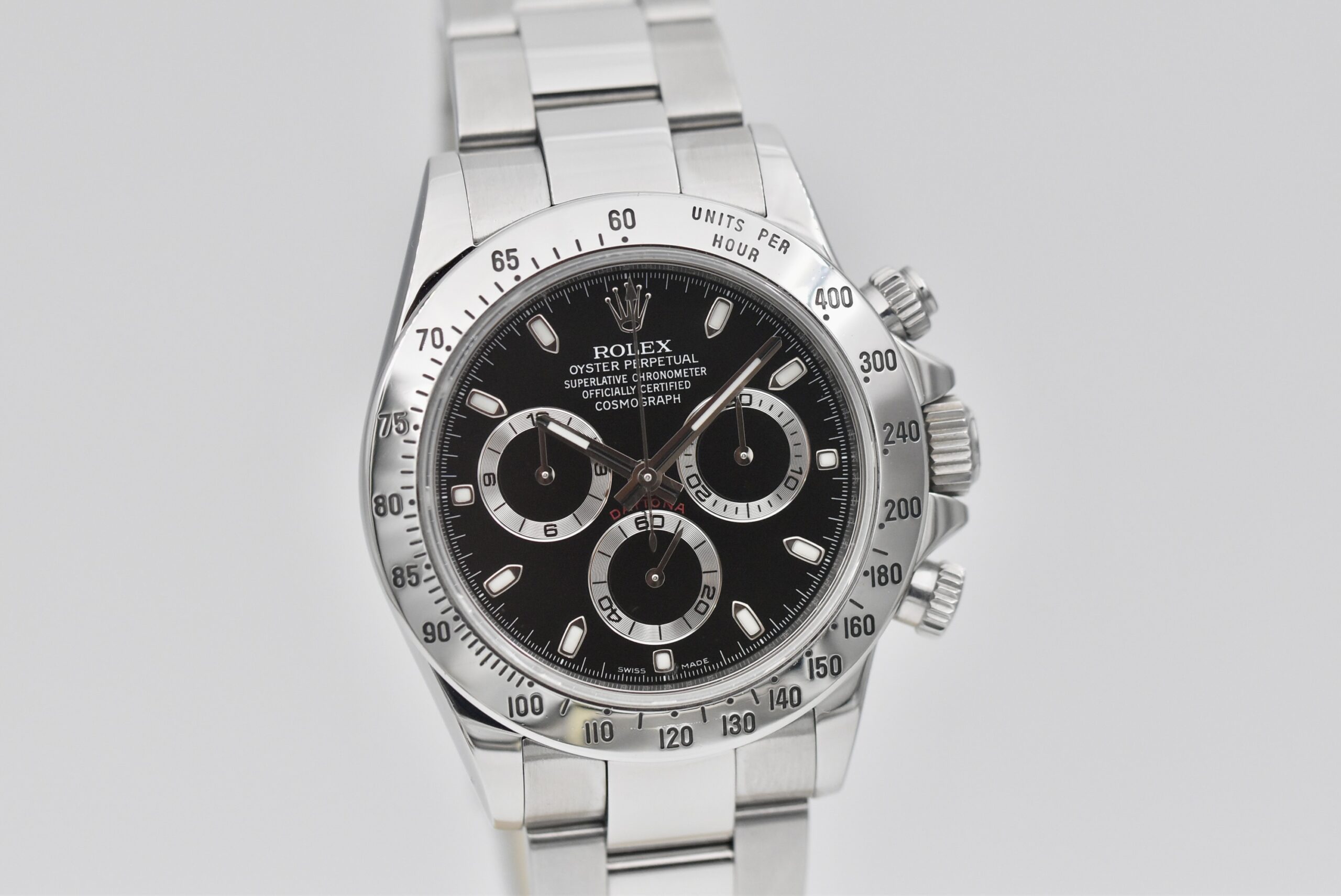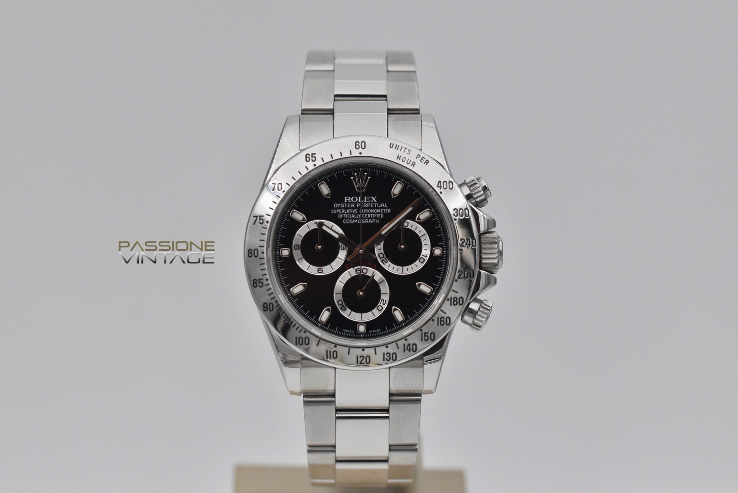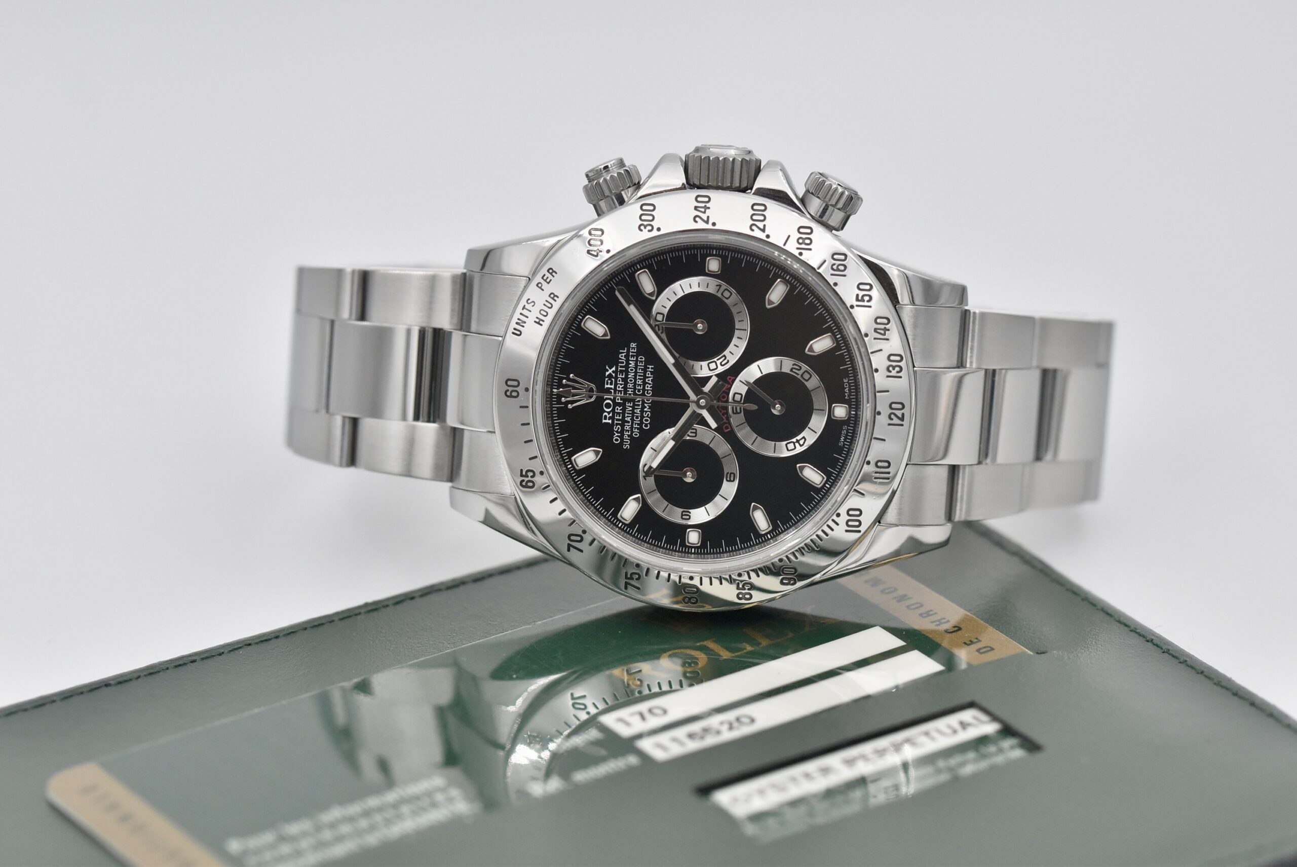 Rolex Daytona Cosmograph, referenza 116520, seriale Gxxxxxx, anno 2011, corredato di scatola originale e card di garanzia Rolex.