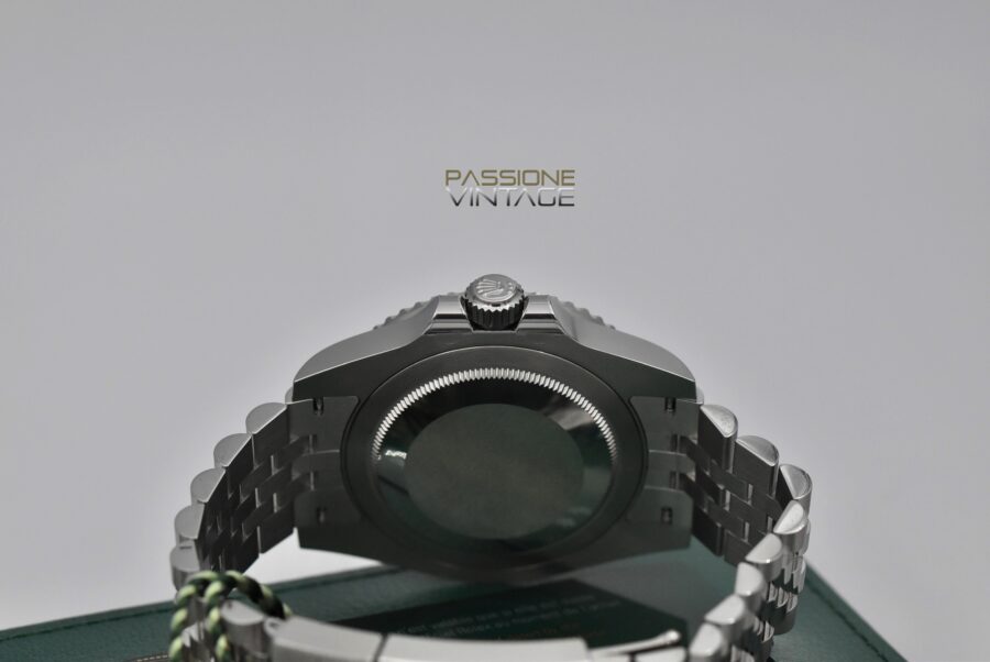 presenta una cassa in acciaio da 40 mm, una lunetta girevole bidirezionale in acciaio con un inserto in ceramica nera e grigia, ed un bracciale Jubilee in acciaio lucido e satinato con chiusura Oysterlock.