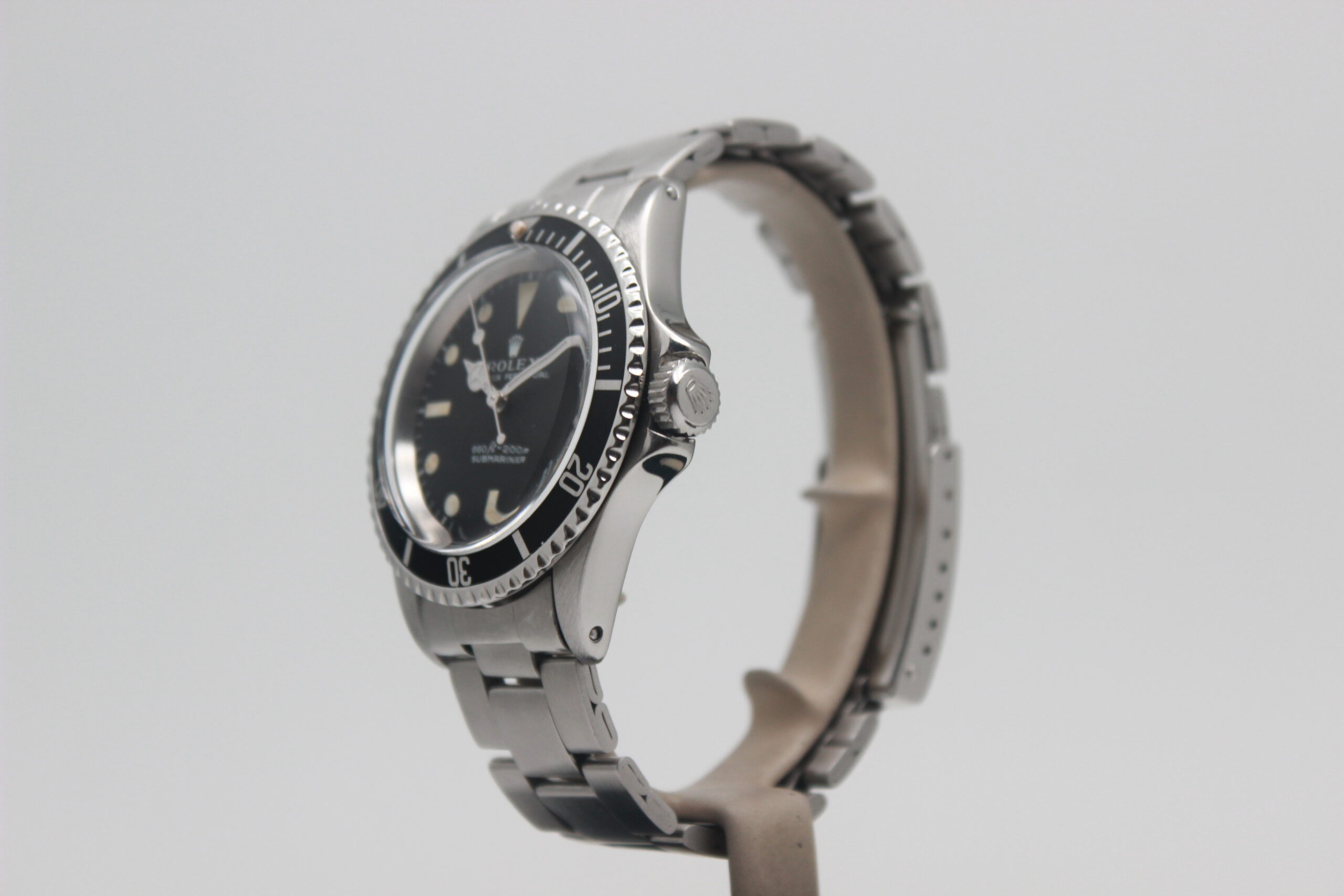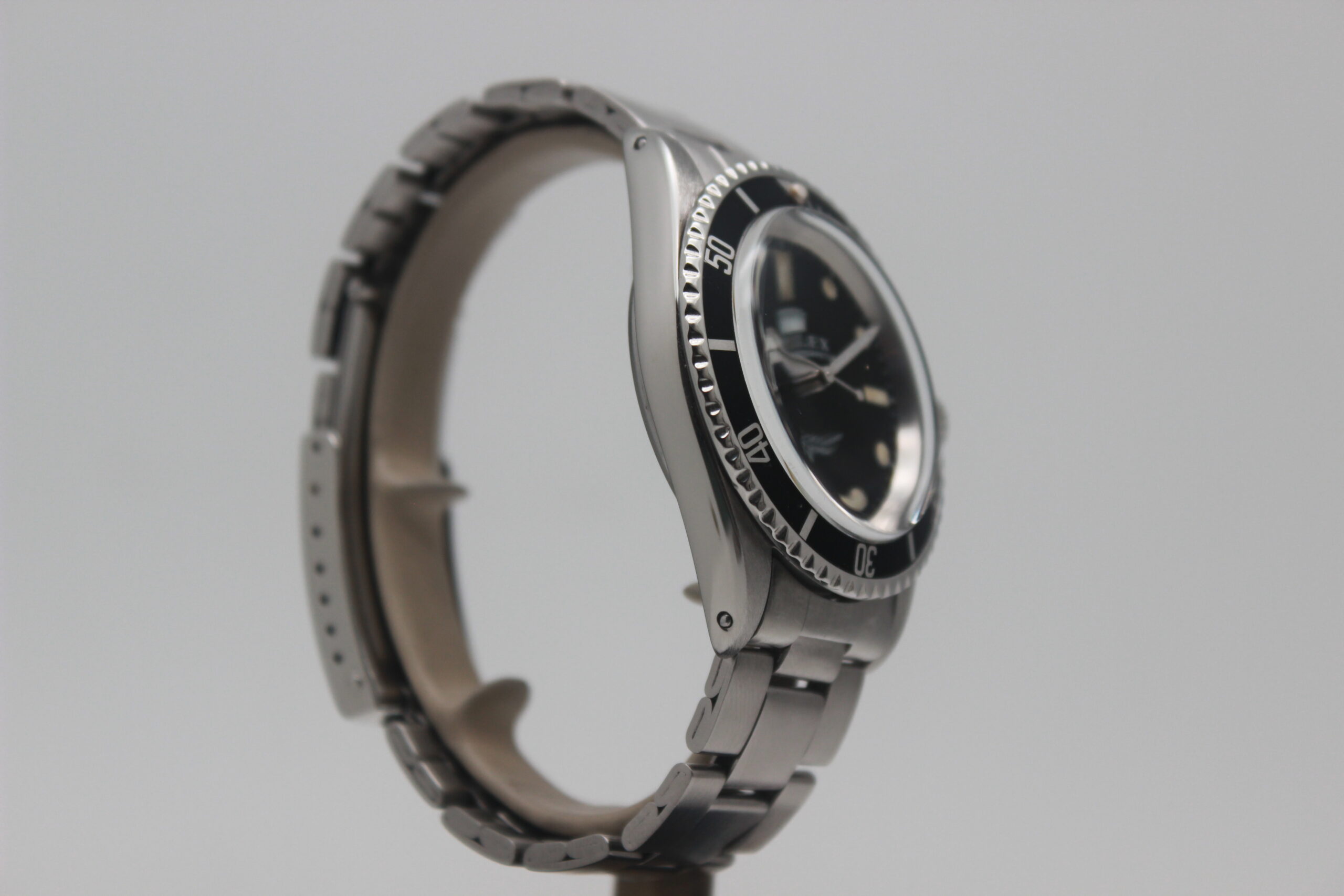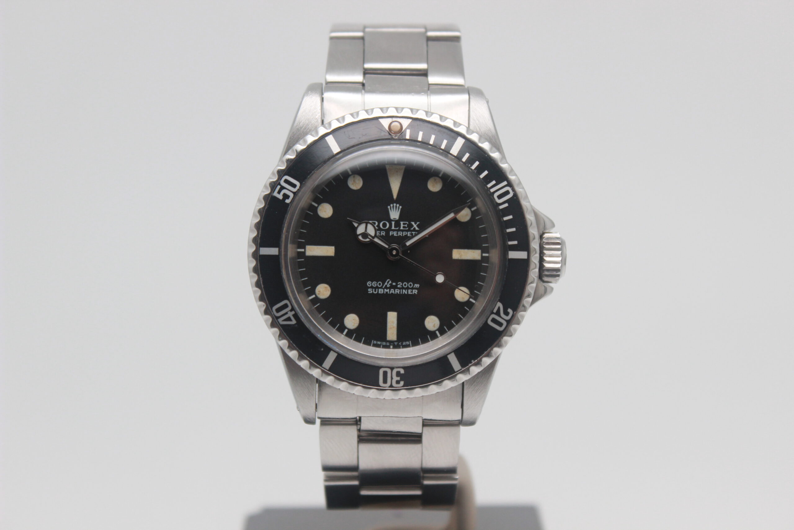Rolex Submariner “Black Dial” 5513, cassa in acciaio da 40mm , quadrante nero a pallettoni al trizio, lunetta in acciaio con inserto in alluminio nero, bracciale Oyster in acciaio satinato con chiusura a cassetta in acciaio.Questo modello è dotato di un movimento meccanico a carica automatica calibro 1520.