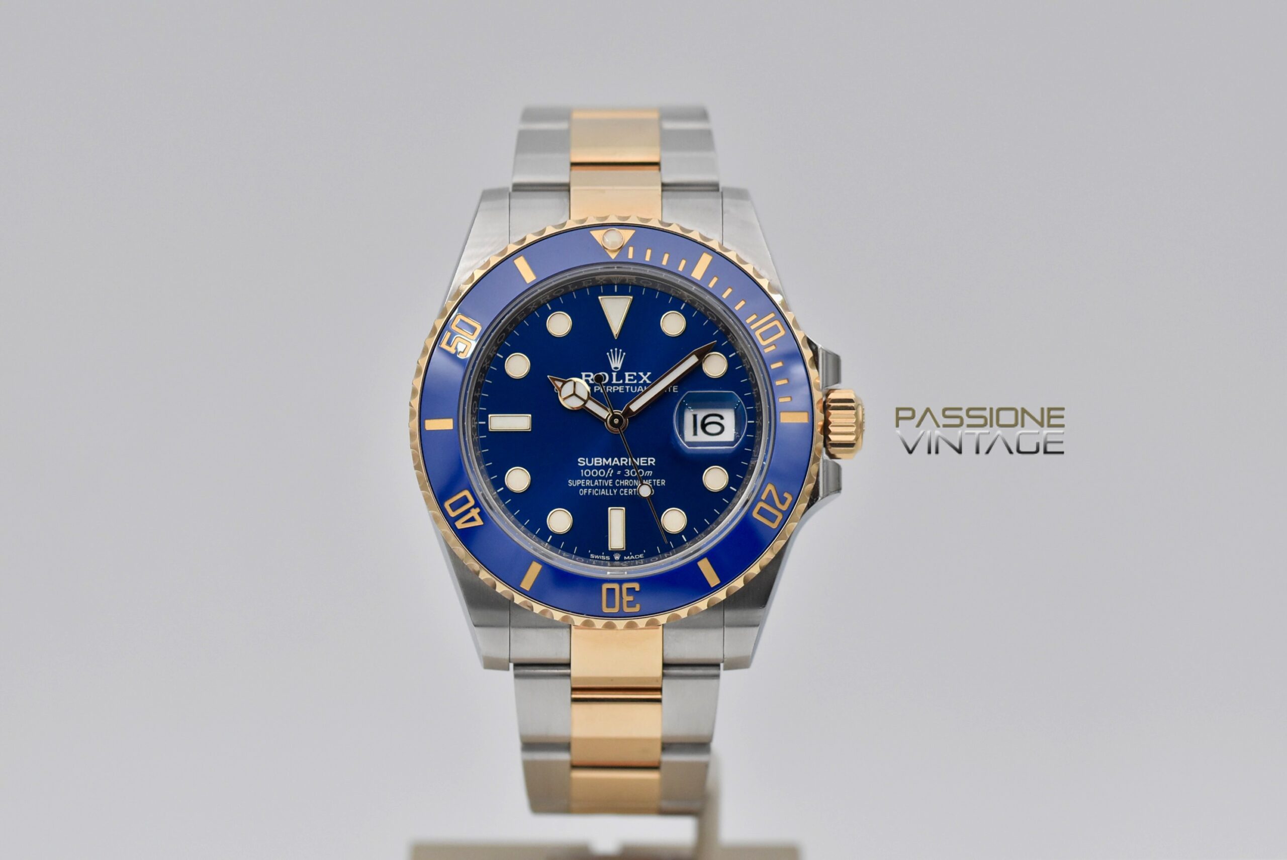 Questo modello è dotato di un movimento automatico di manifattura Rolex calibro 3235 e di un quadrante di colore blu.