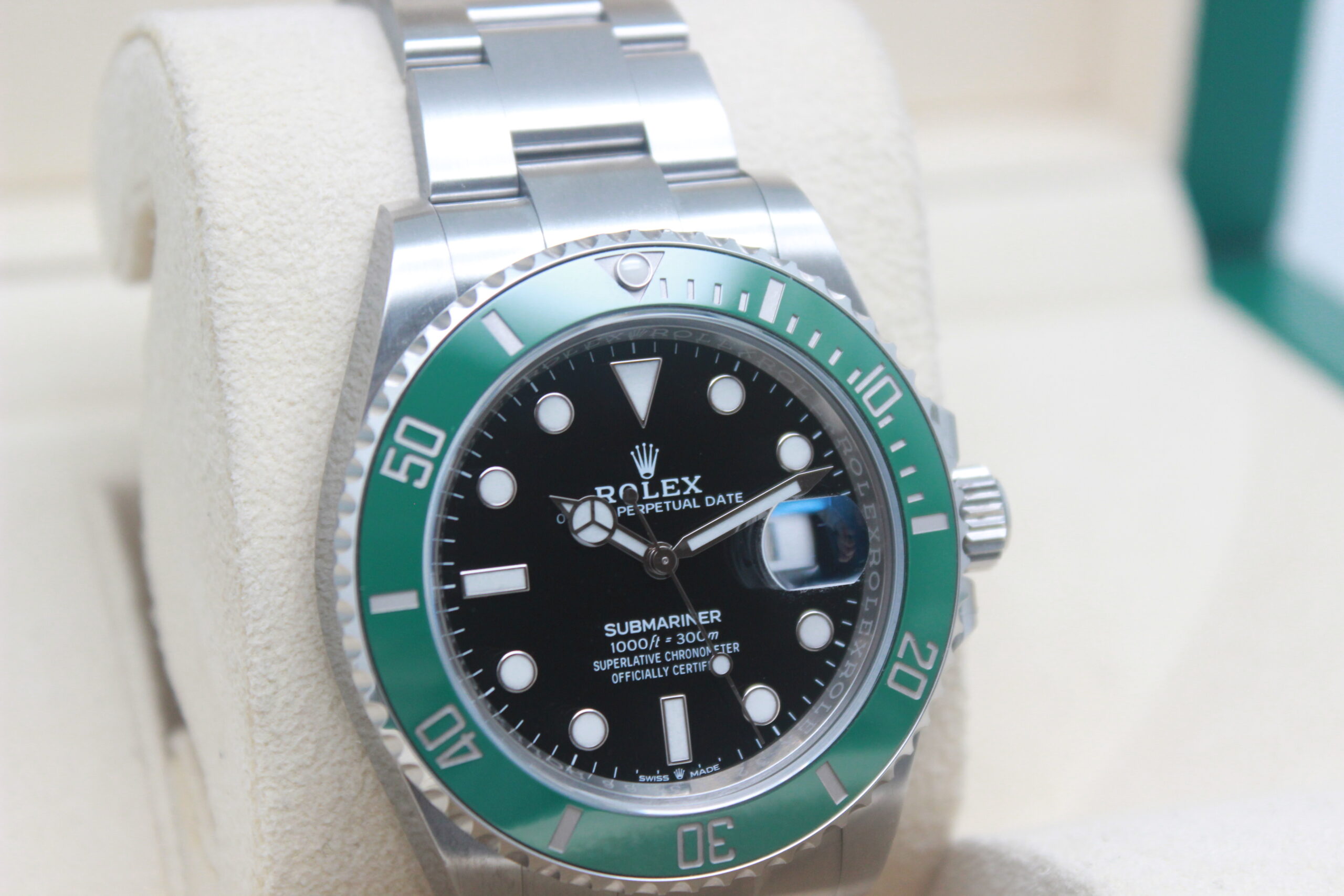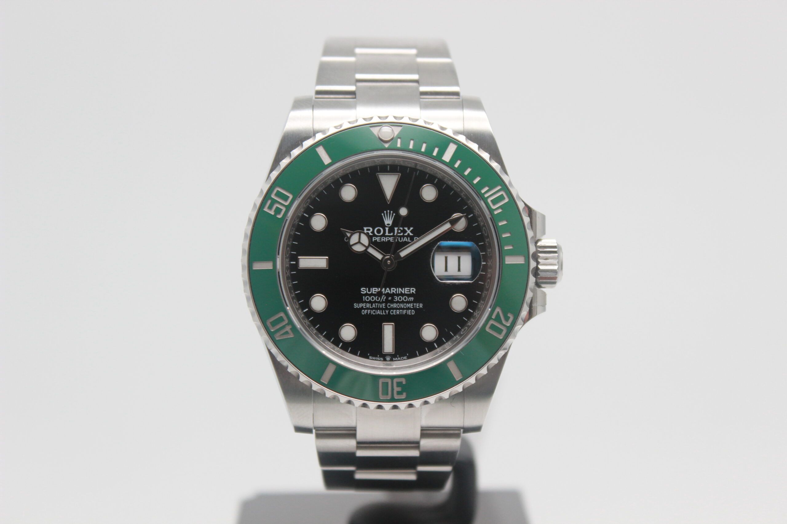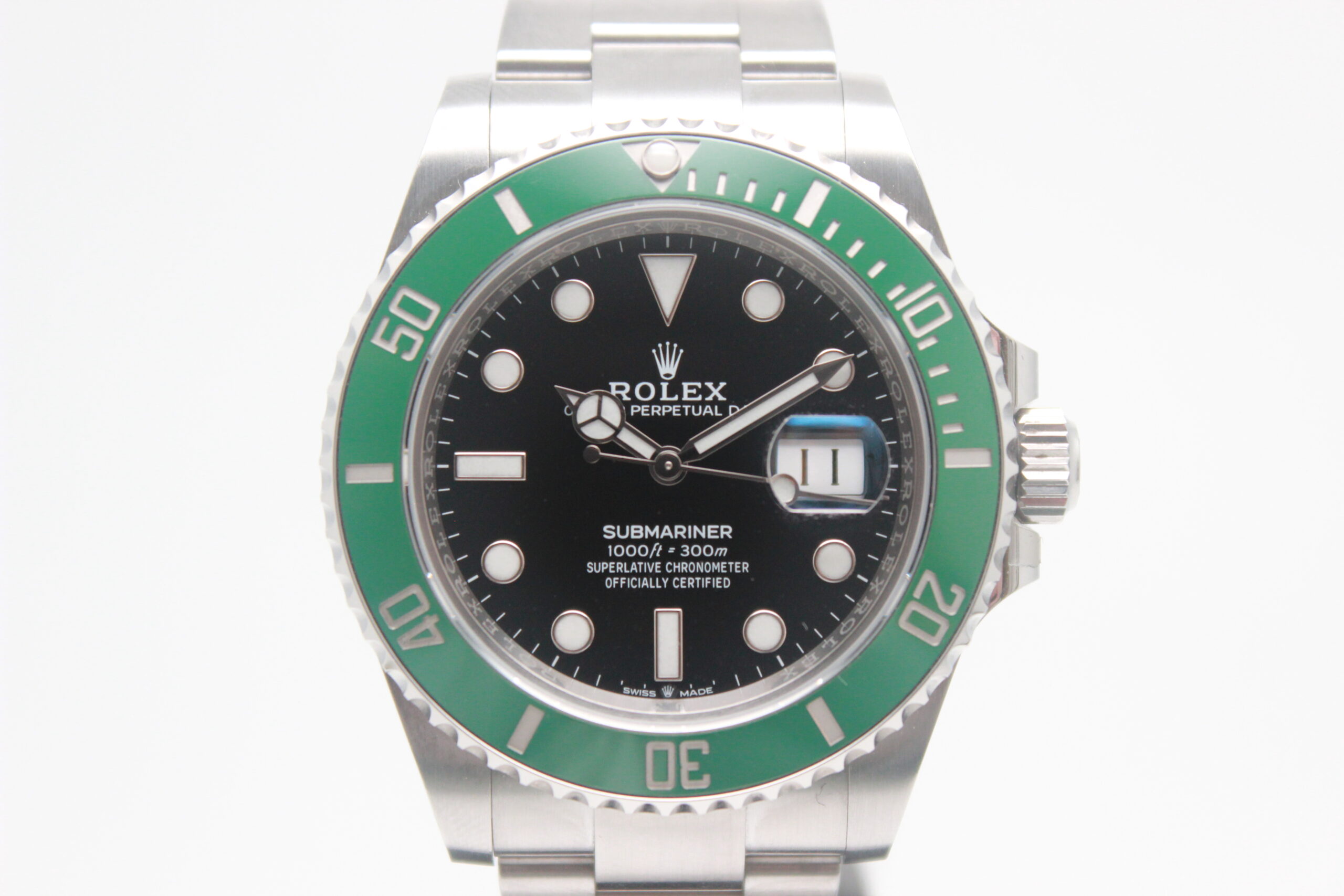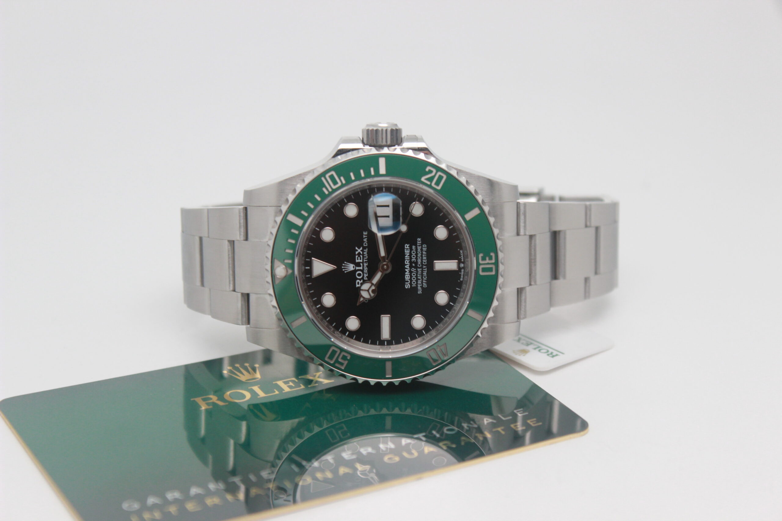 Rolex Submariner Date “Starbucks” 126610LV Full Set 2020, cassa in acciaio da 41 mm, quadrante nero con data, lunetta in acciaio con inserto in ceramica verde, bracciale Oyster in acciaio satinato con chiusura Oysterlock in acciaio. Corredato di scatola e card di garanzia originali Rolex.